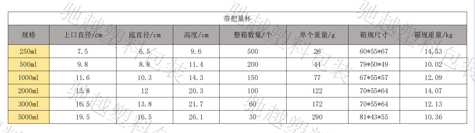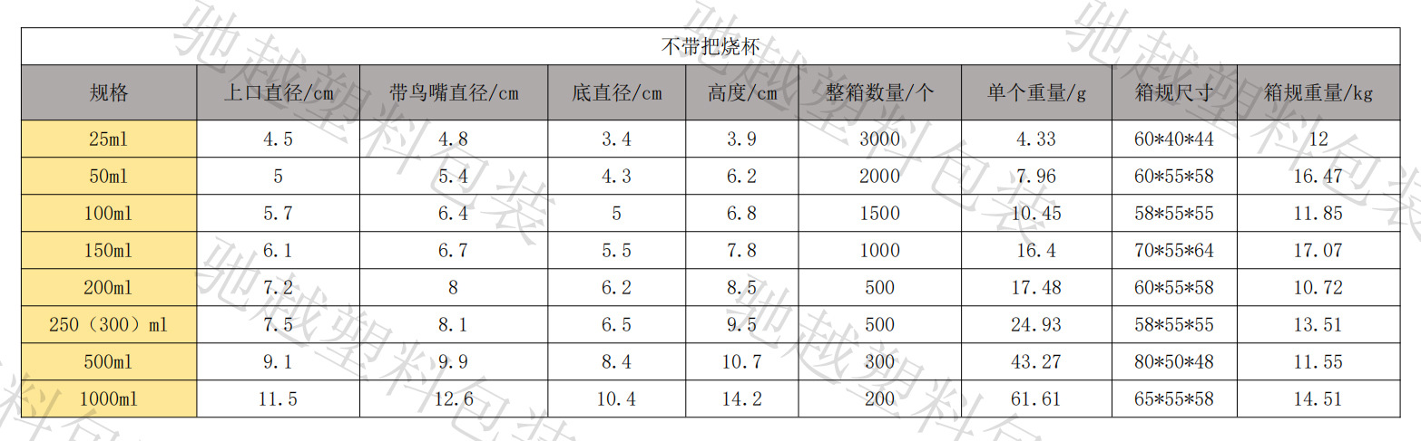 | 1000毫升无手柄 | ¥169 | 999937个可售 |