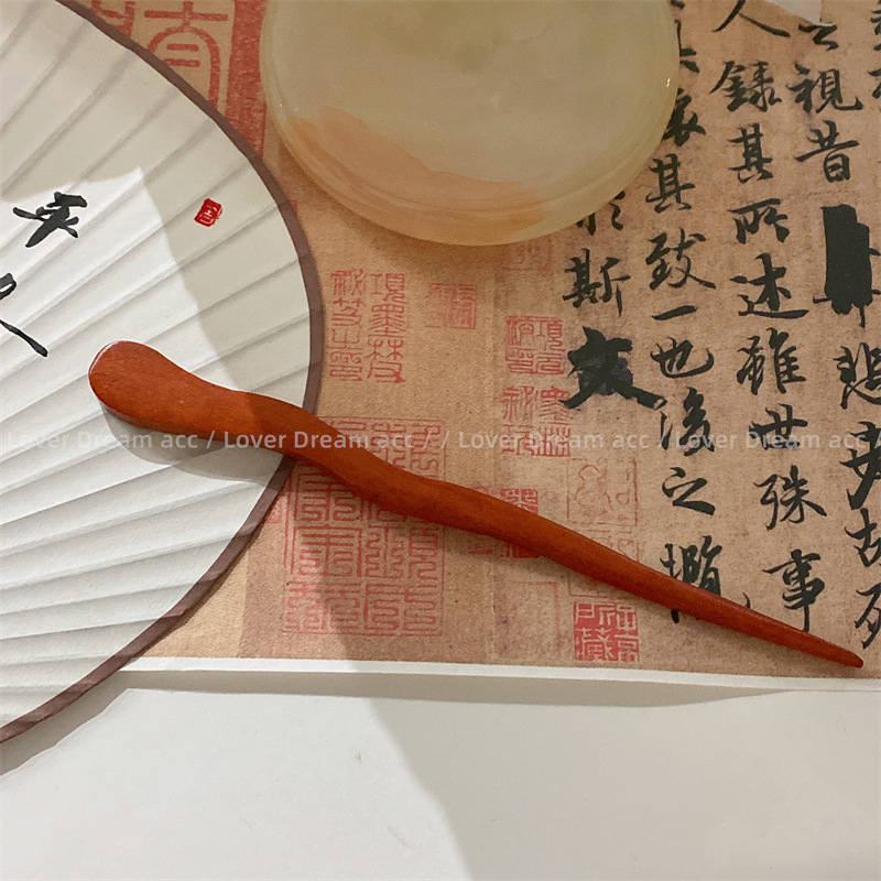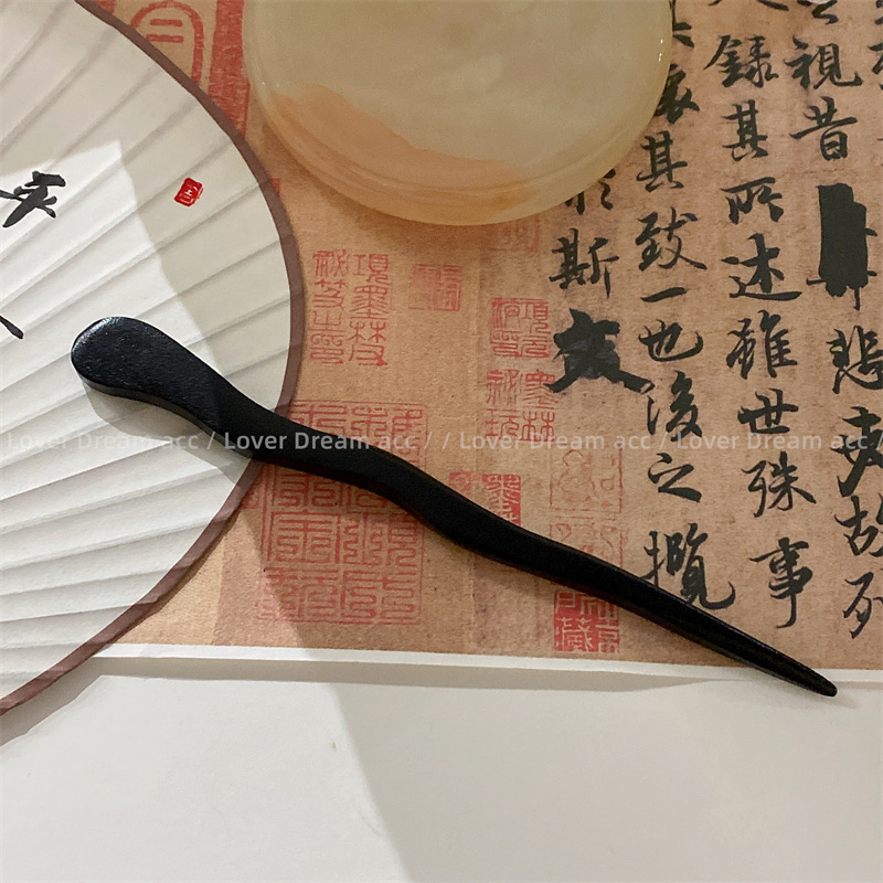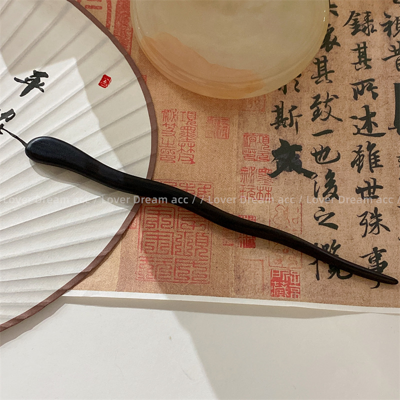 新款古风黑檀木曲线高级感发簪 新中式国潮扎丸子头束发头饰发饰