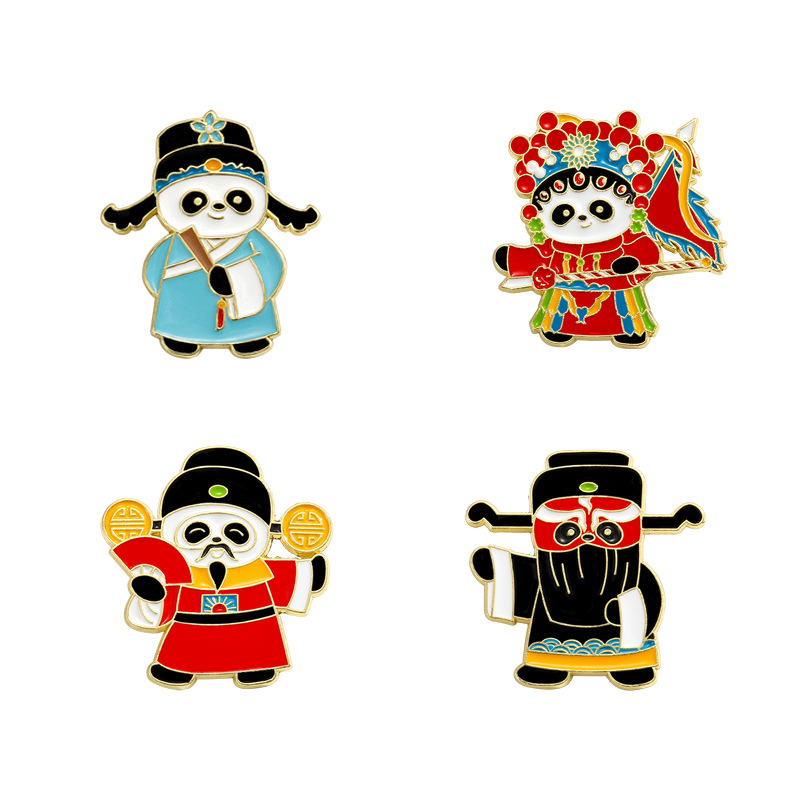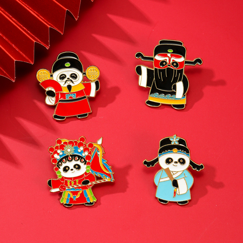 文创可爱京剧熊猫胸针收藏纪念国潮文化戏剧动物金属徽章衣服挂饰
