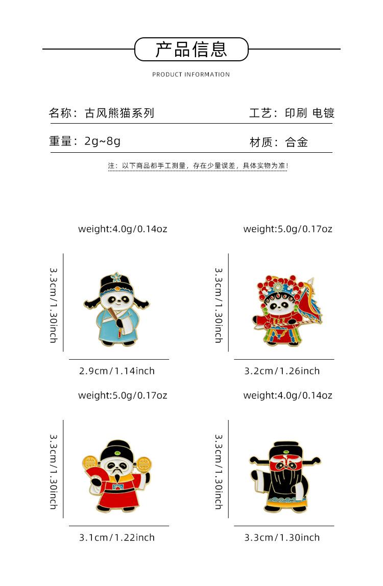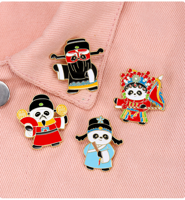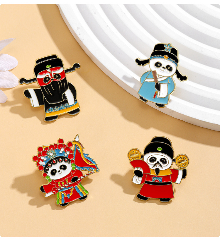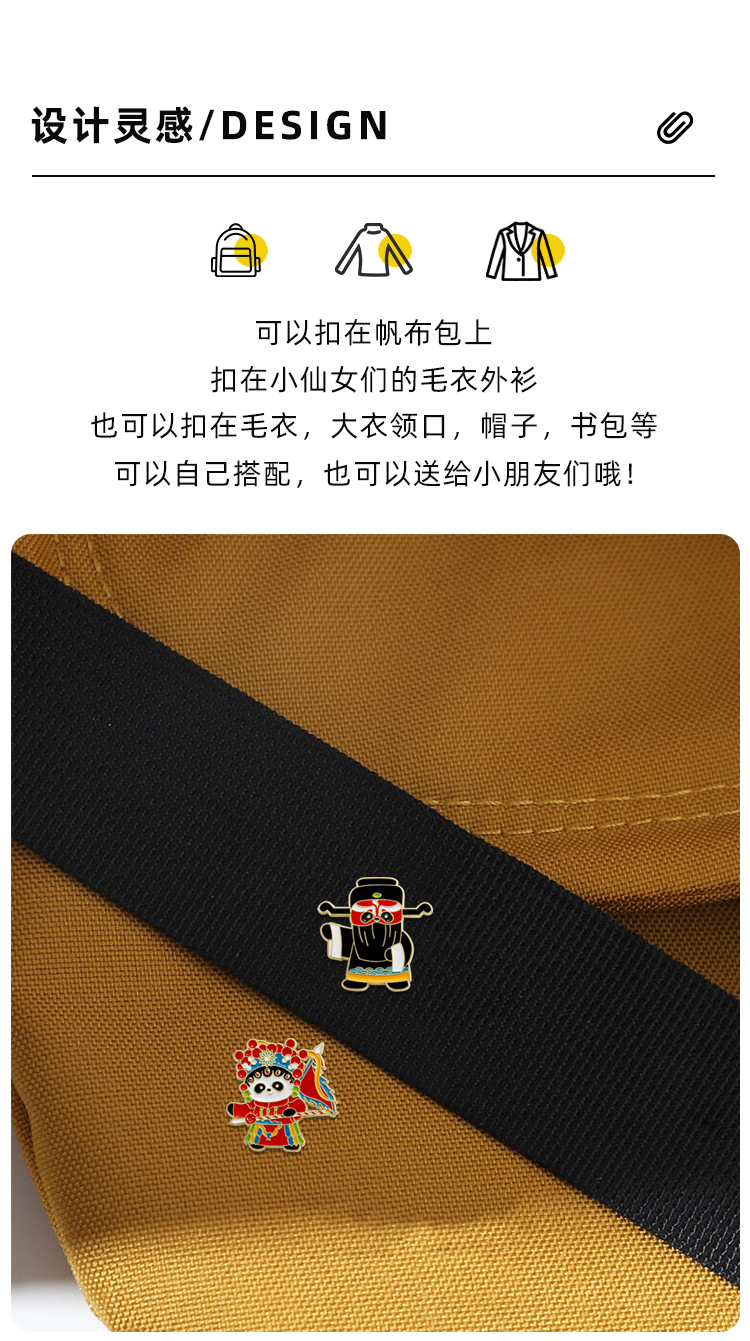 文创可爱京剧熊猫胸针收藏纪念国潮文化戏剧动物金属徽章衣服挂饰 投诉
