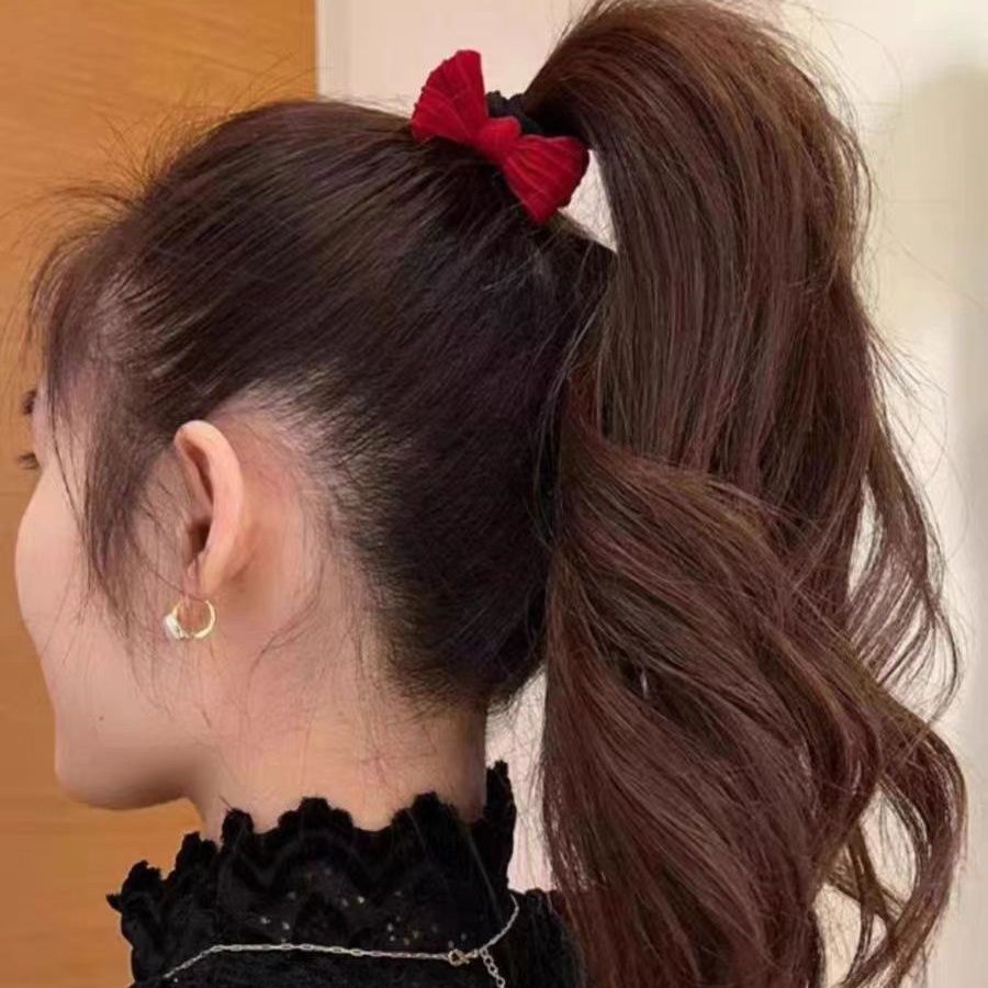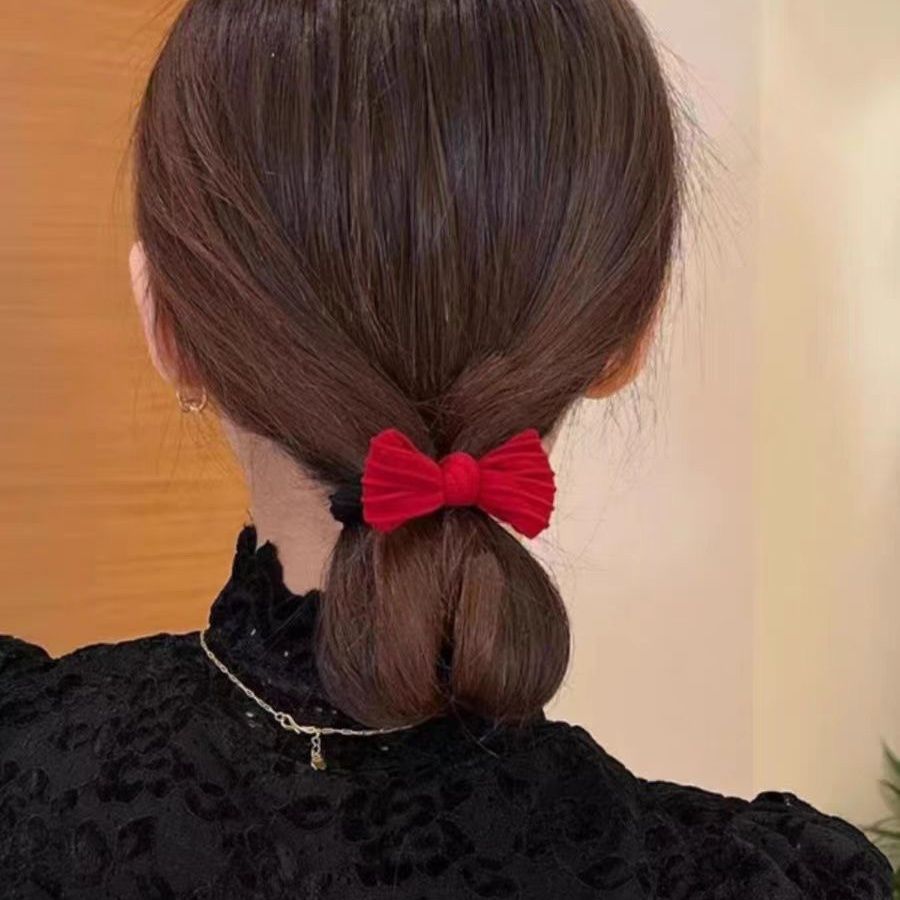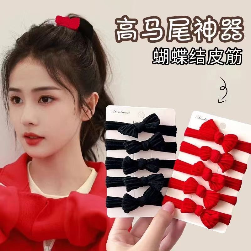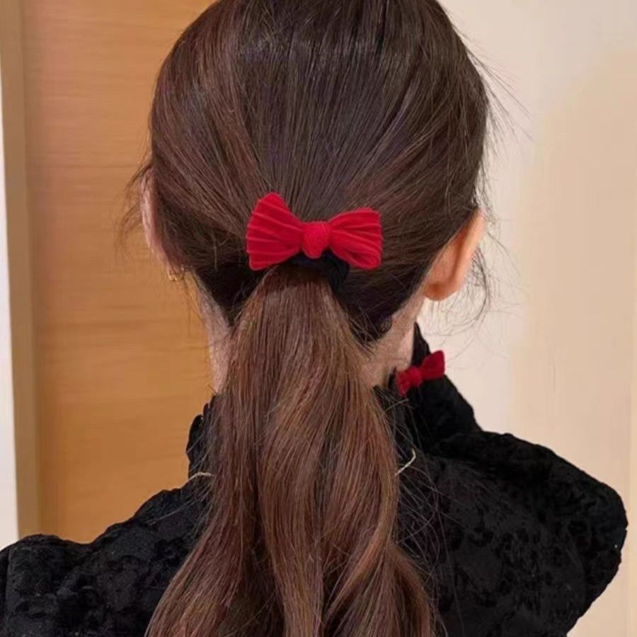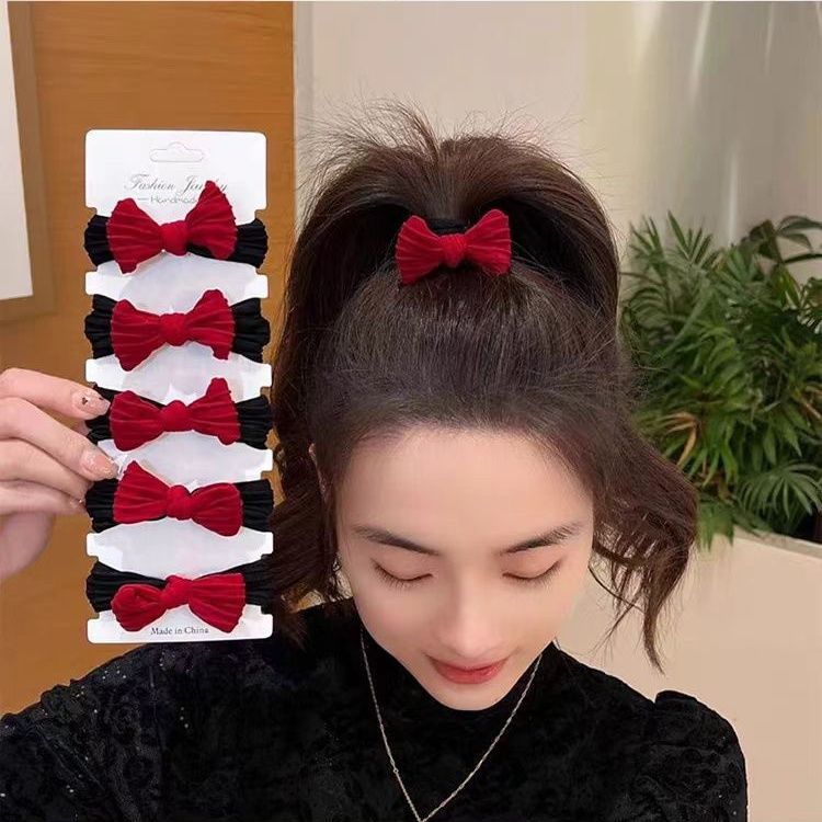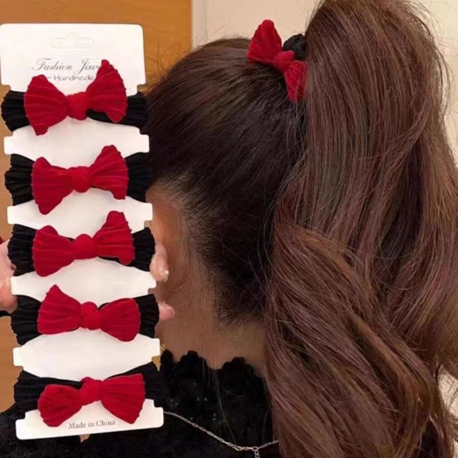 新年喜庆高品质10蝴蝶结红色发绳秋冬加粗加厚高弹力发圈头绳