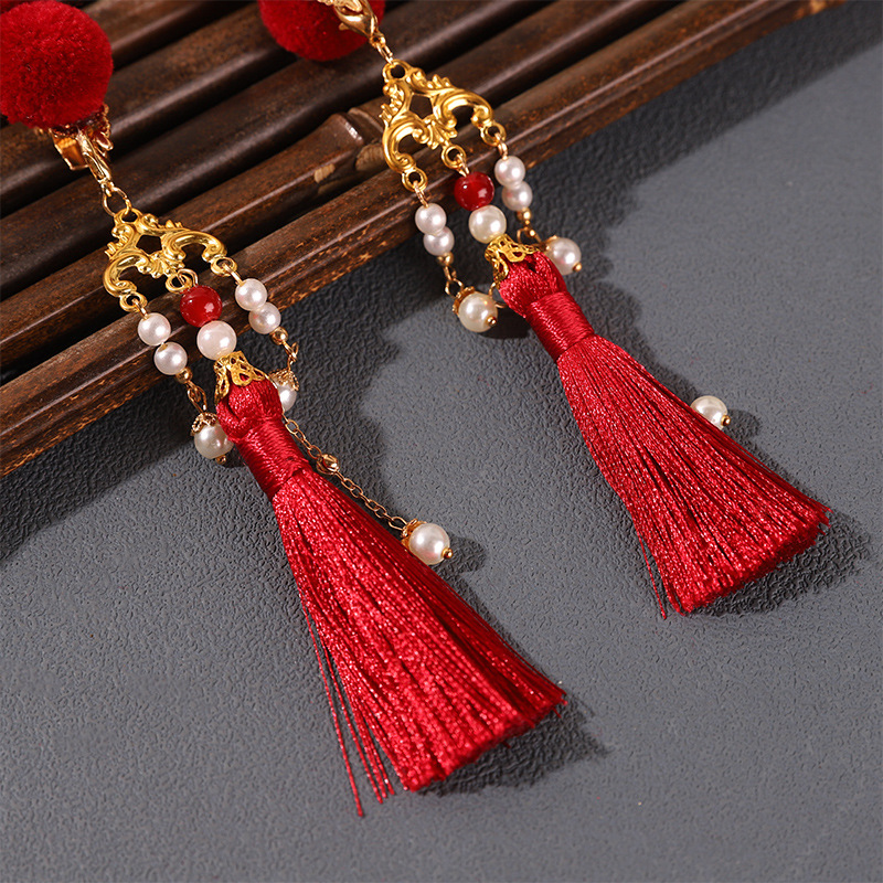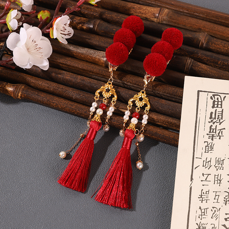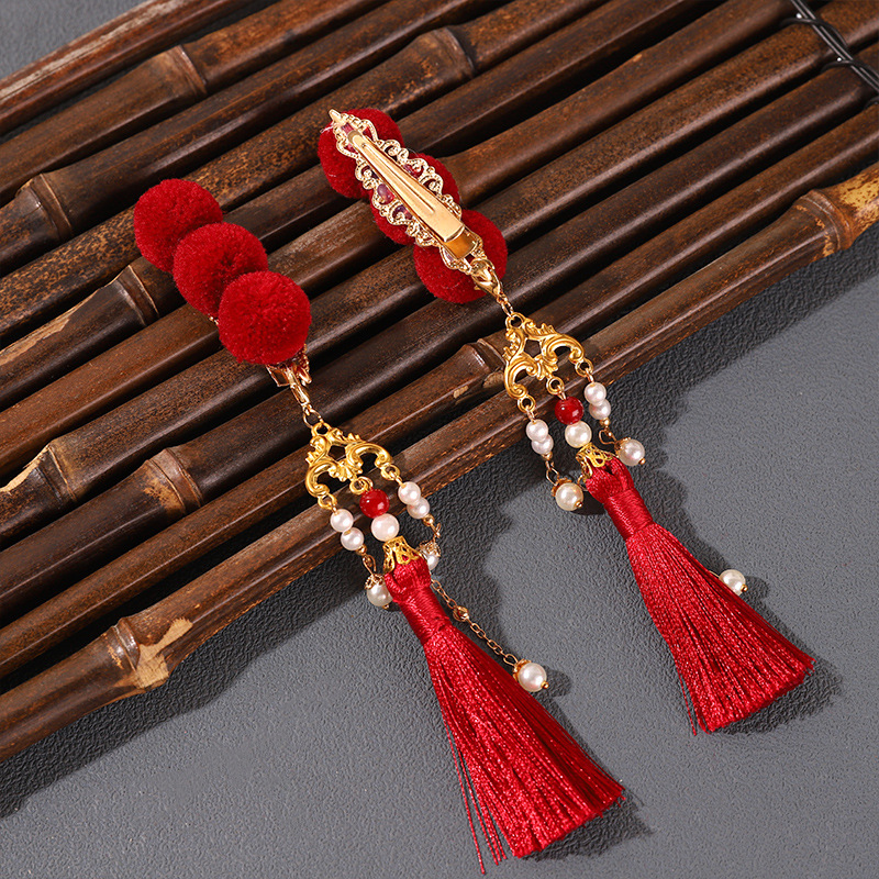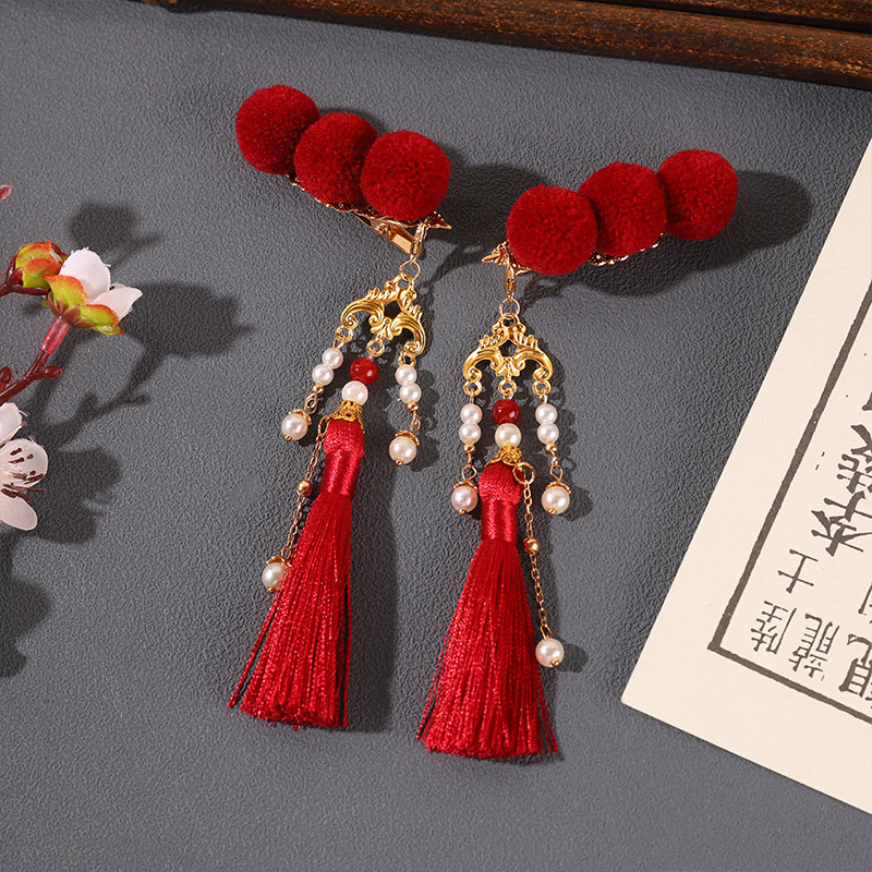 中国风糖葫芦头饰可爱红色流苏毛球发夹古风汉服新年发饰夹配