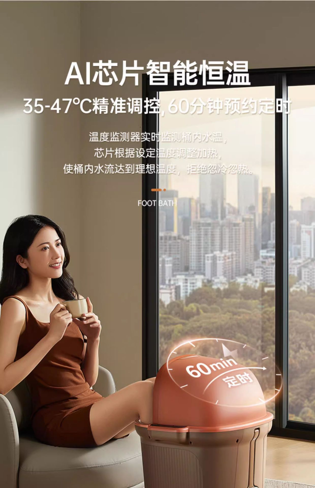 新飞足浴桶超深桶自动按摩加热电动高深桶家用过小腿洗脚盆泡脚桶