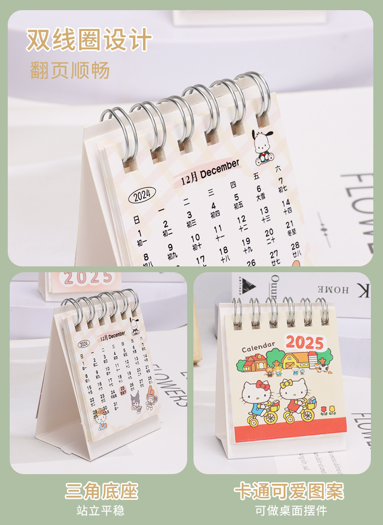 2025年新款日历可爱卡通迷你桌面小台历办公室摆件新年创意礼物本