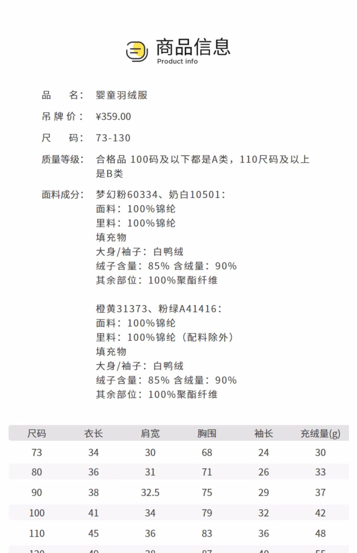 | 110cm充绒量48g | ¥10560 | 90件可售 |