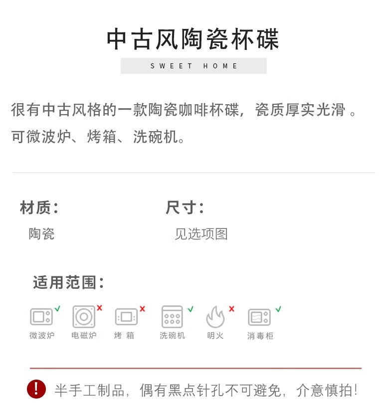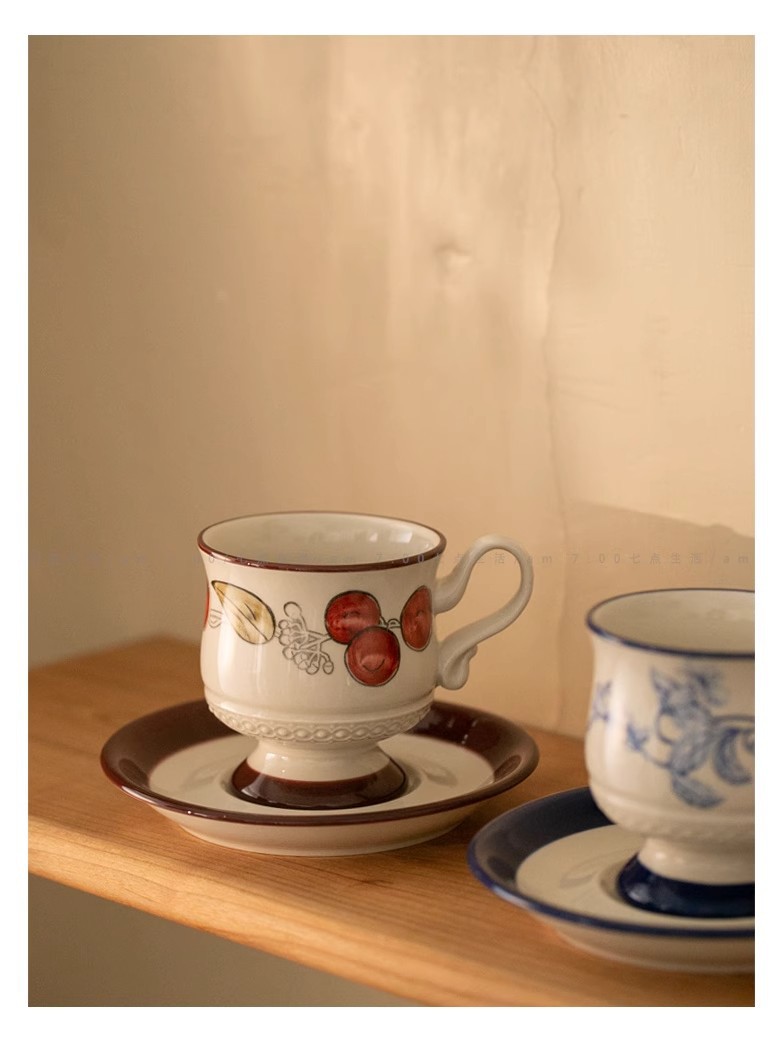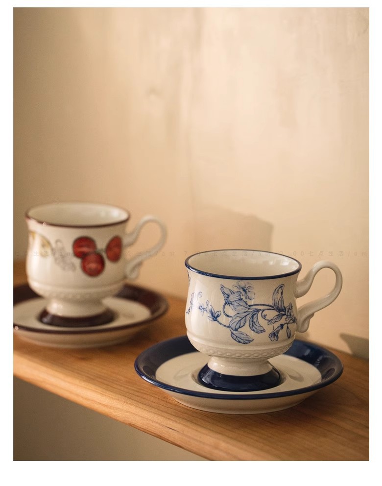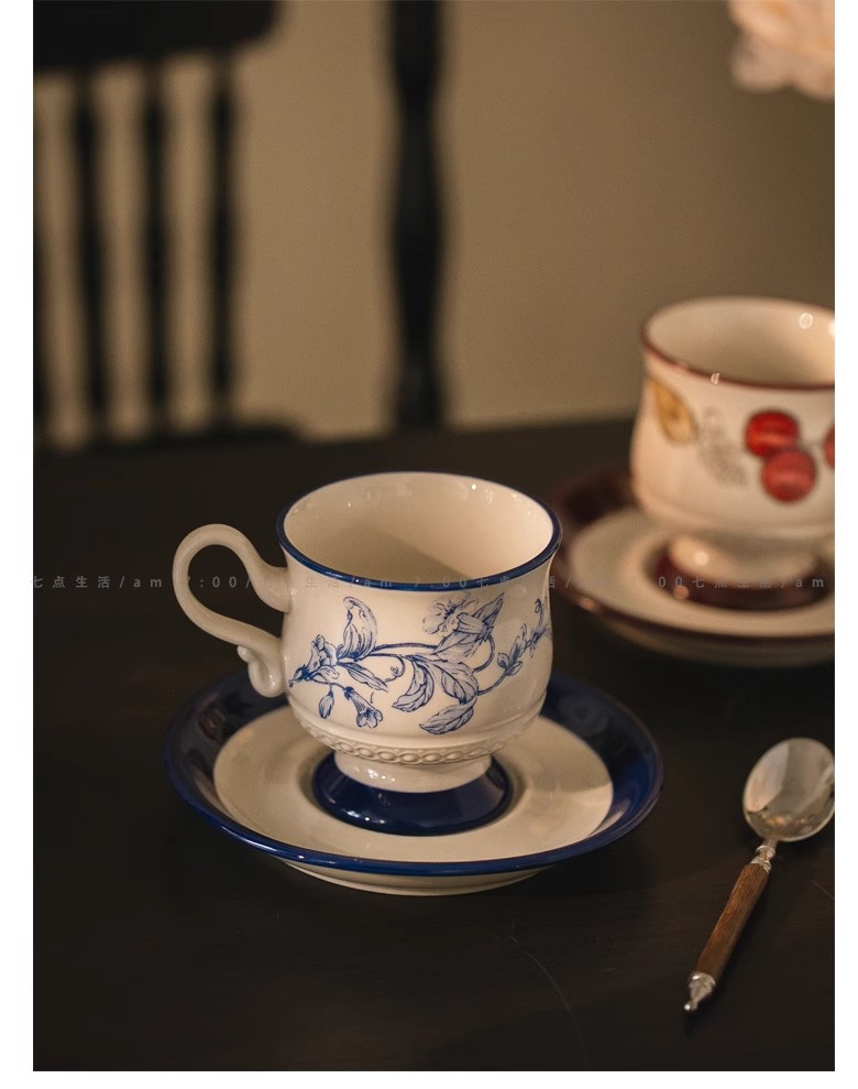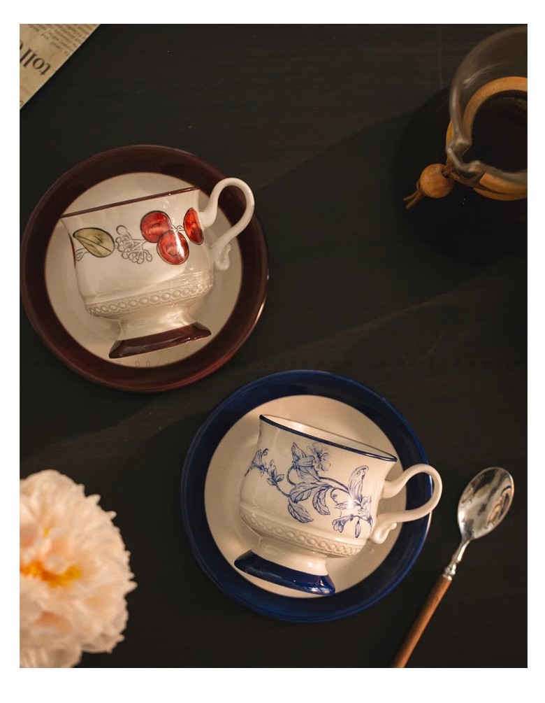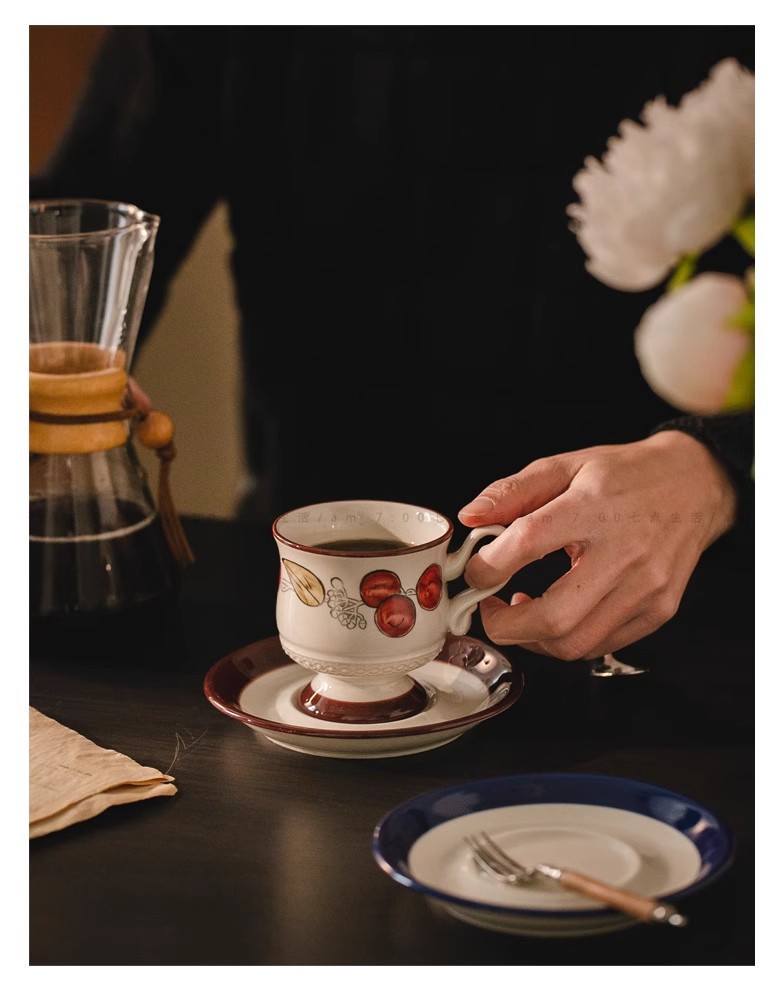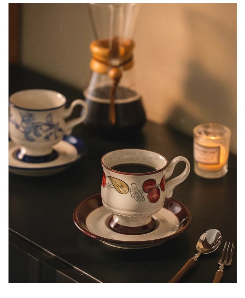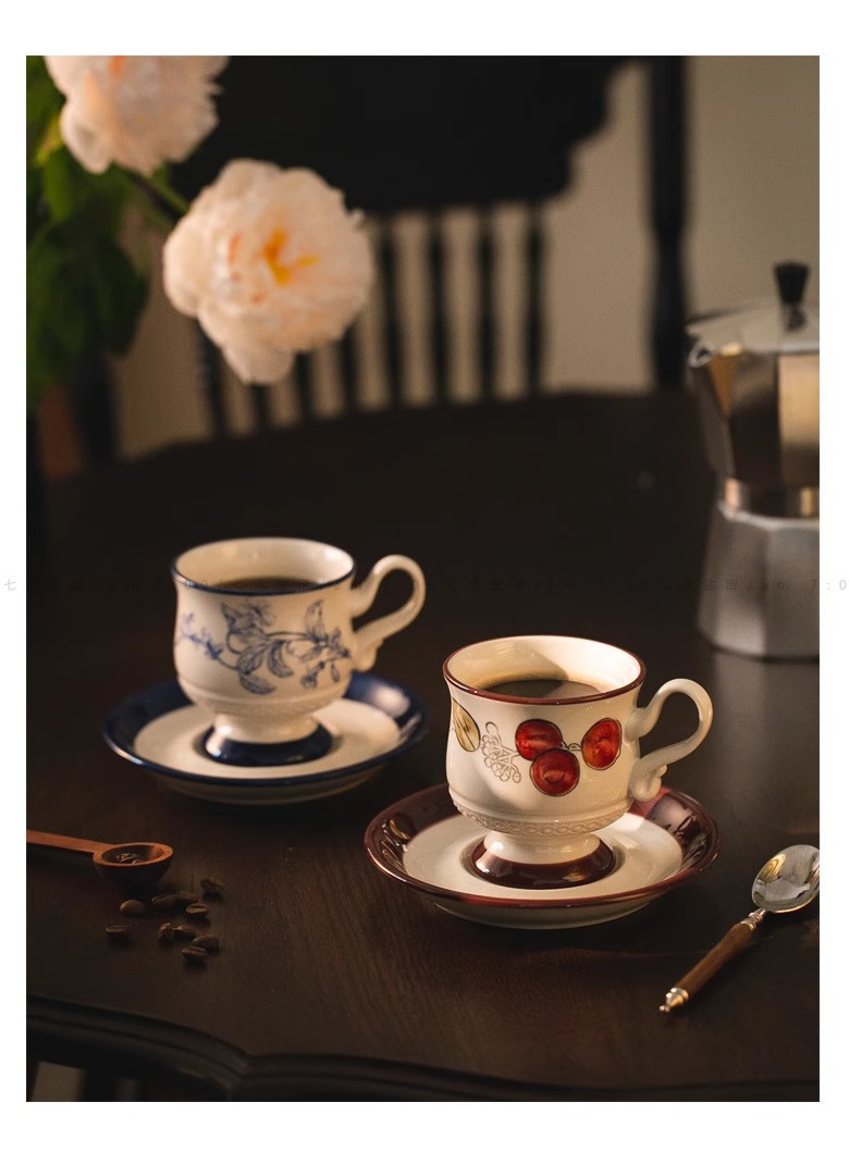 中古风陶瓷咖啡杯碟套装轻奢高级下午茶杯花茶杯马克杯拿铁拉花杯 投诉