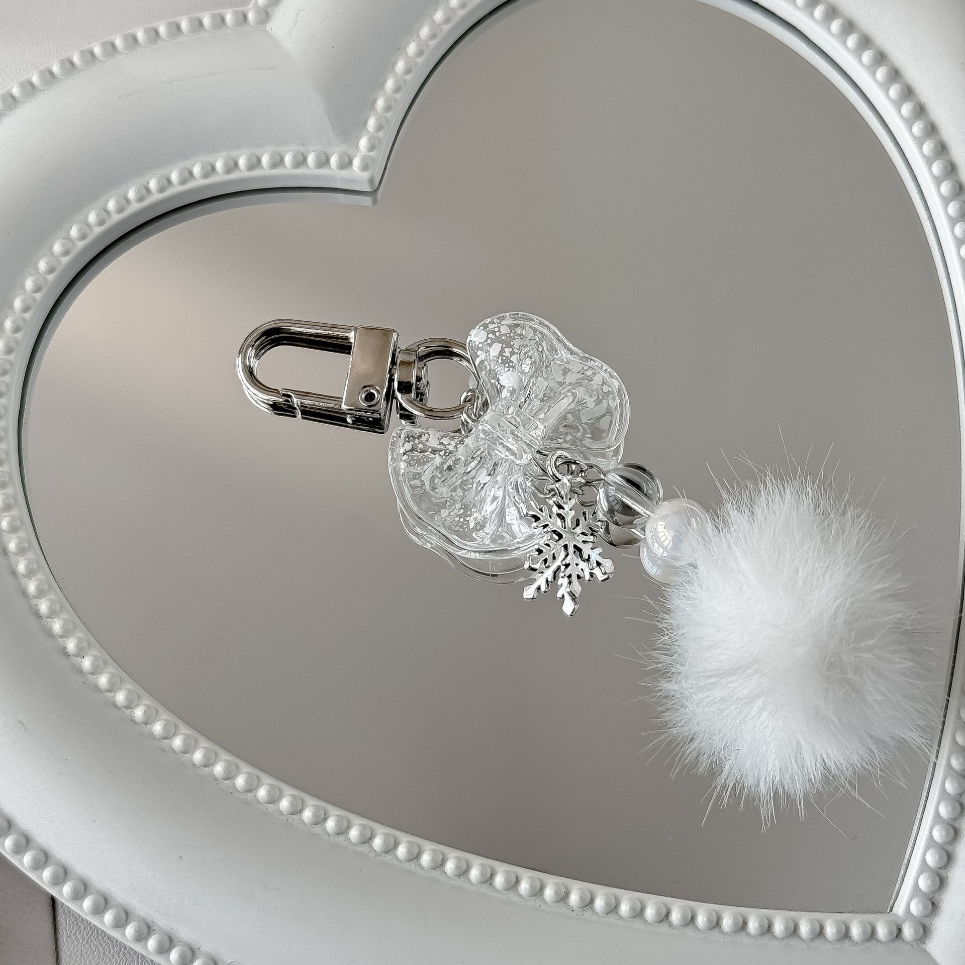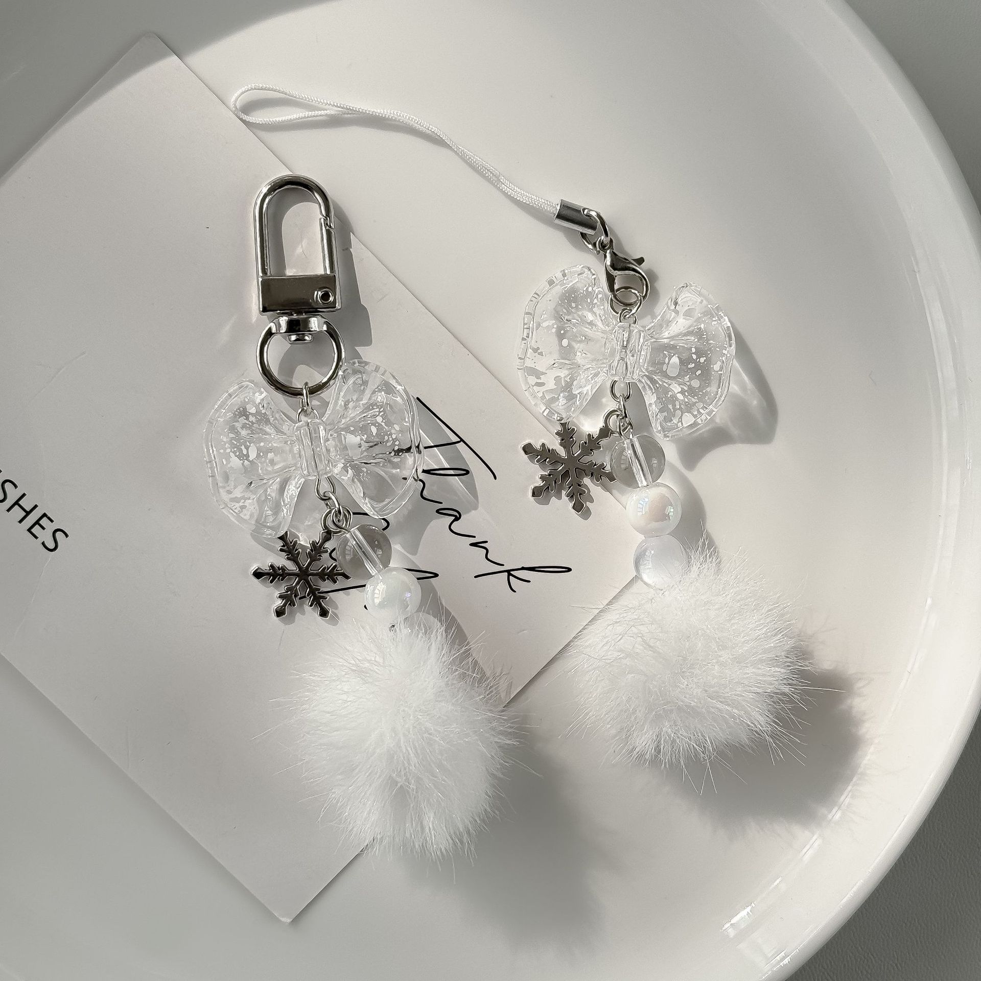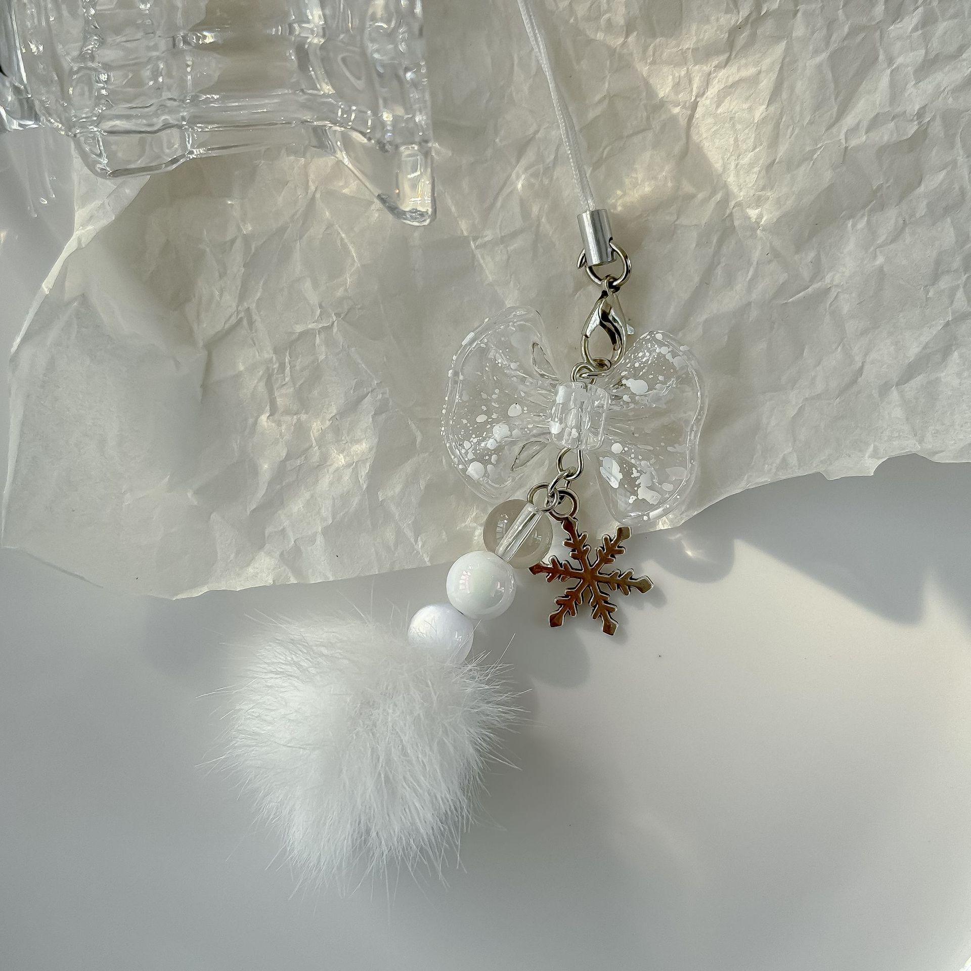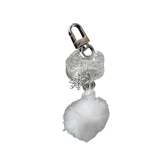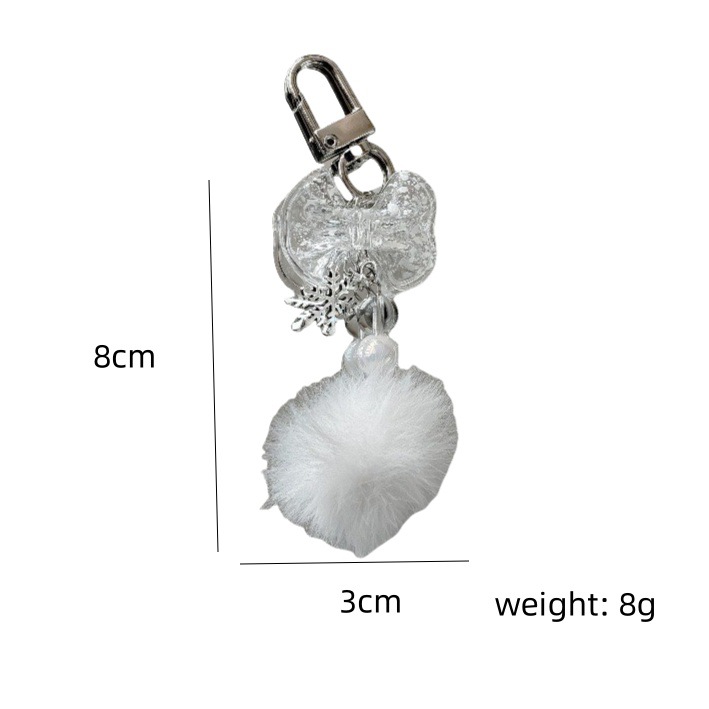 【冬日的浪漫】新款雪花毛球挂件清透蝴蝶结手机链装饰挂链钥匙扣