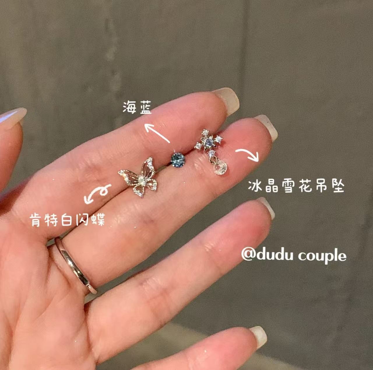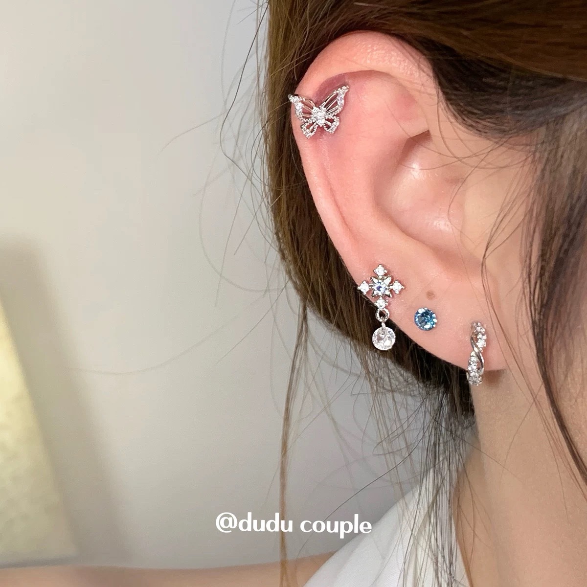 绝美蝴蝶耳骨钉钛钢养耳洞超闪锆石耳蜗钉女甜美平底