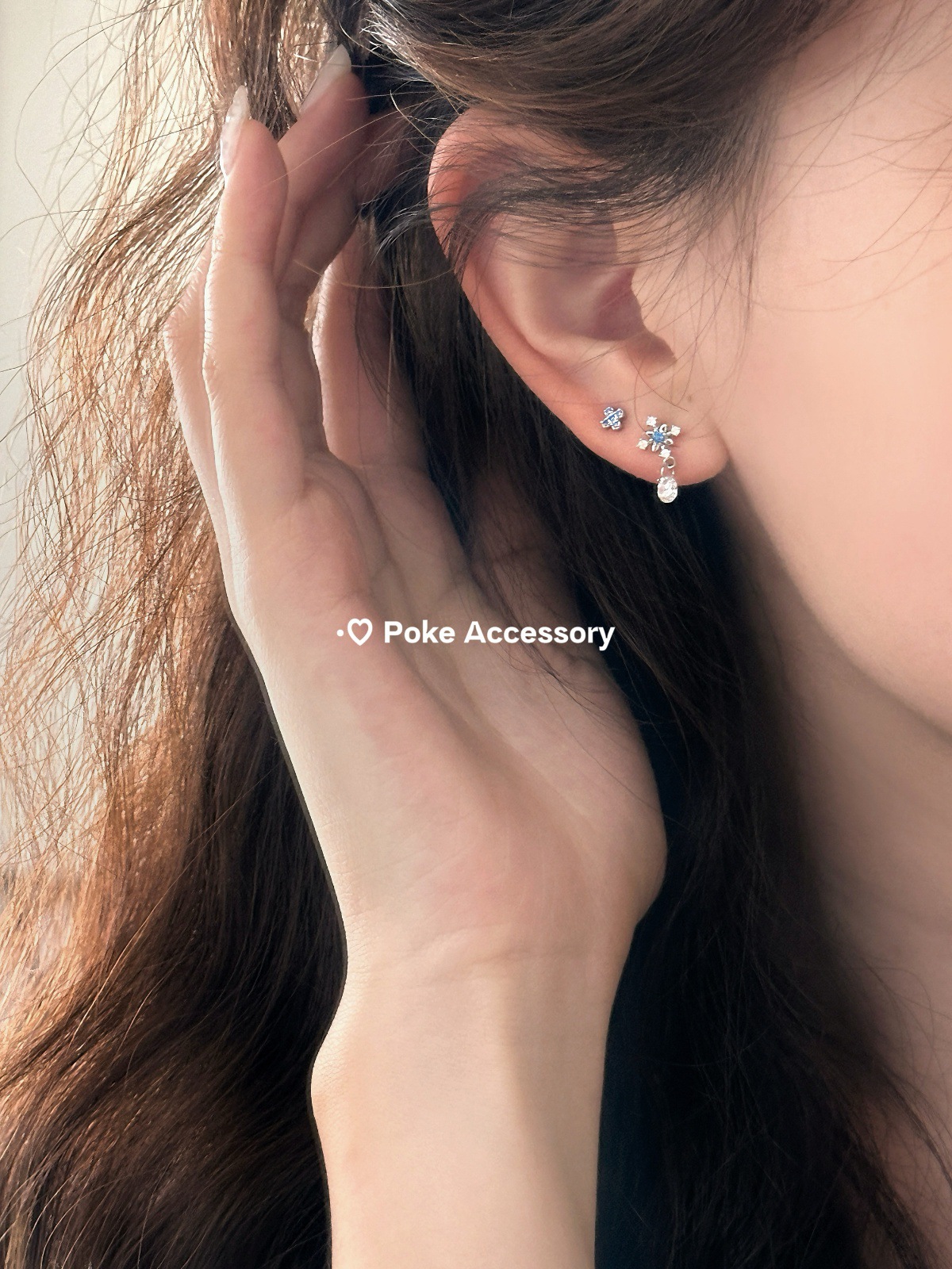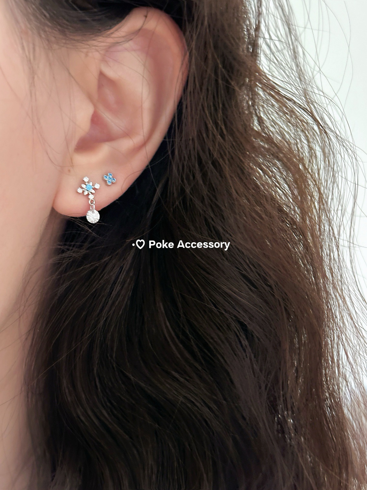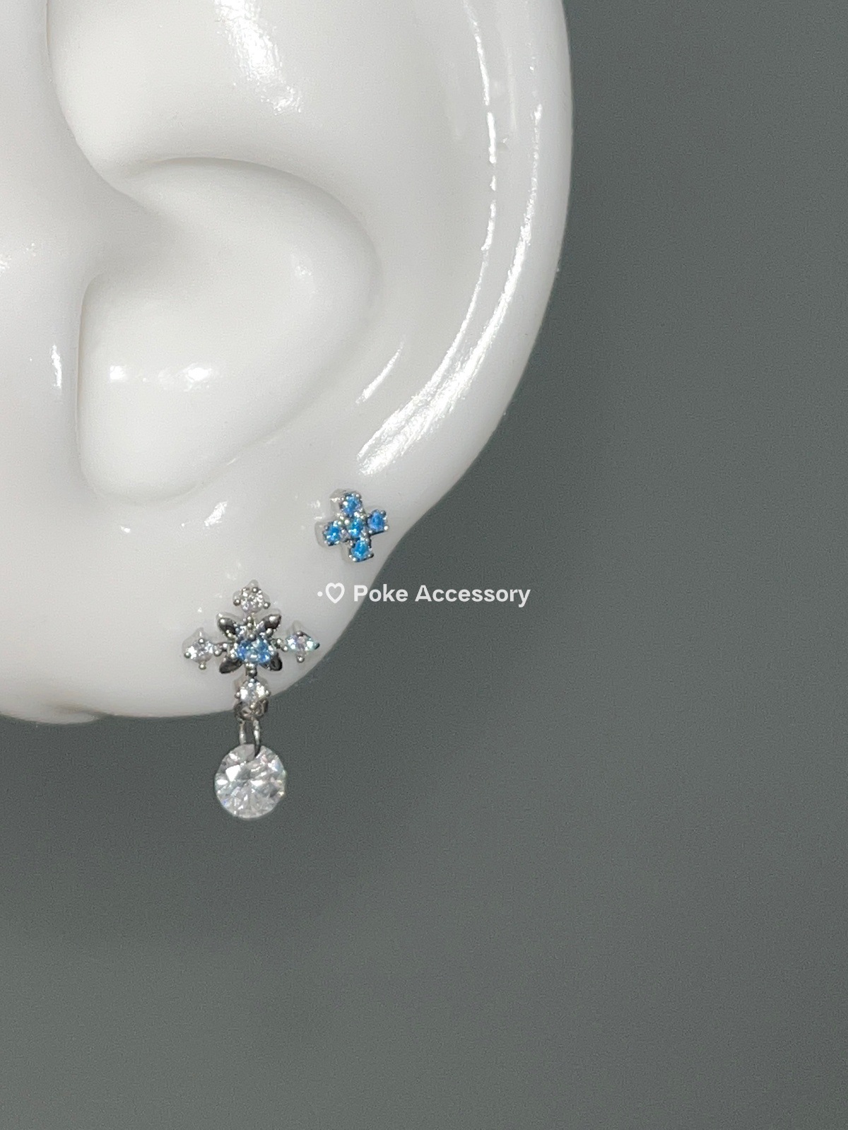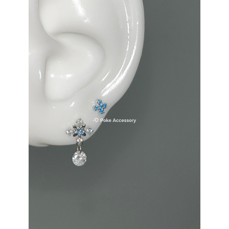 星之泪 清冷蓝钻芒星吊坠耳骨钉钛钢螺丝钉免摘医用钛钢耳骨钉