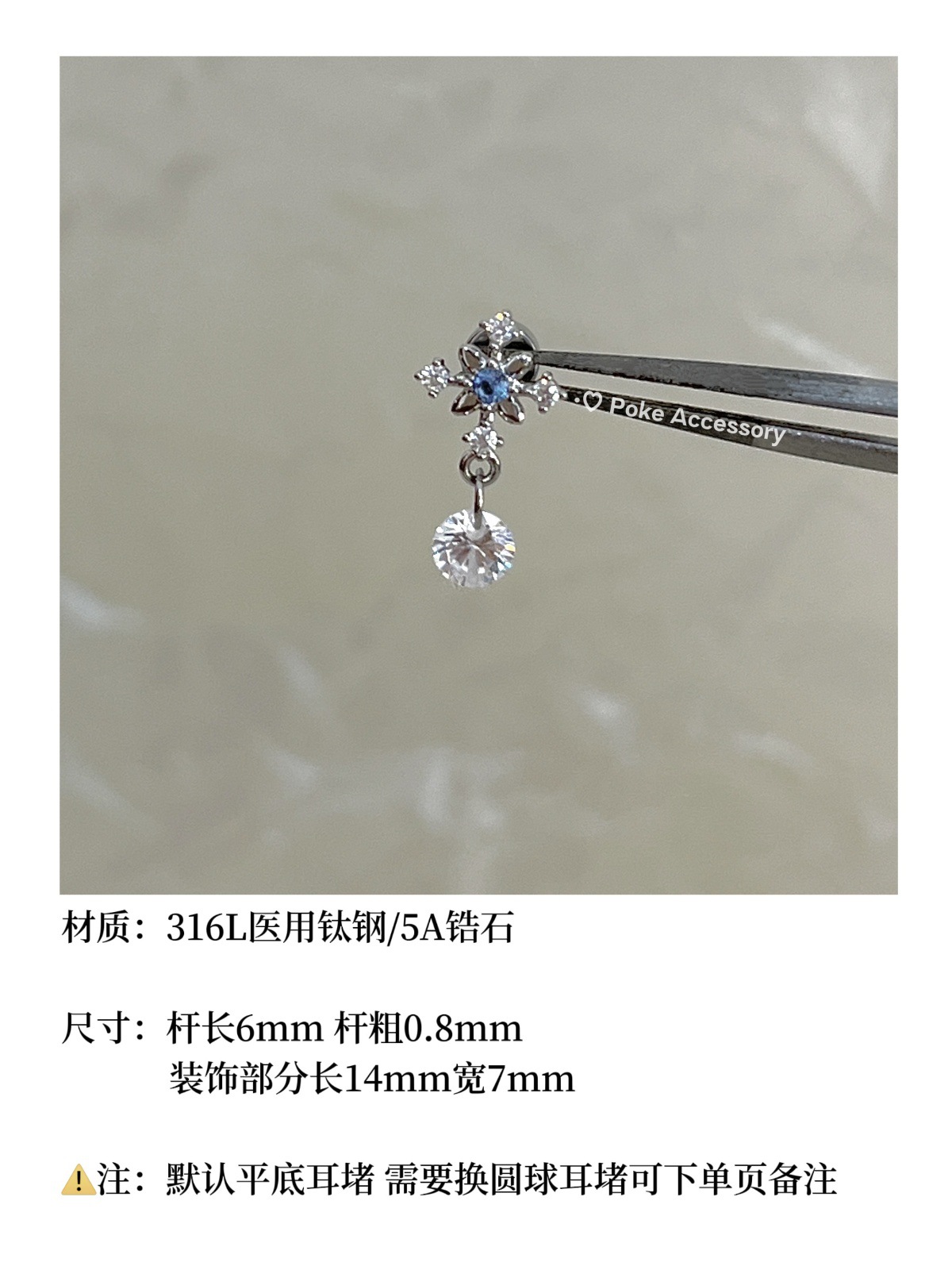 星之泪 清冷蓝钻芒星吊坠耳骨钉钛钢螺丝钉免摘医用钛钢耳骨钉 投诉