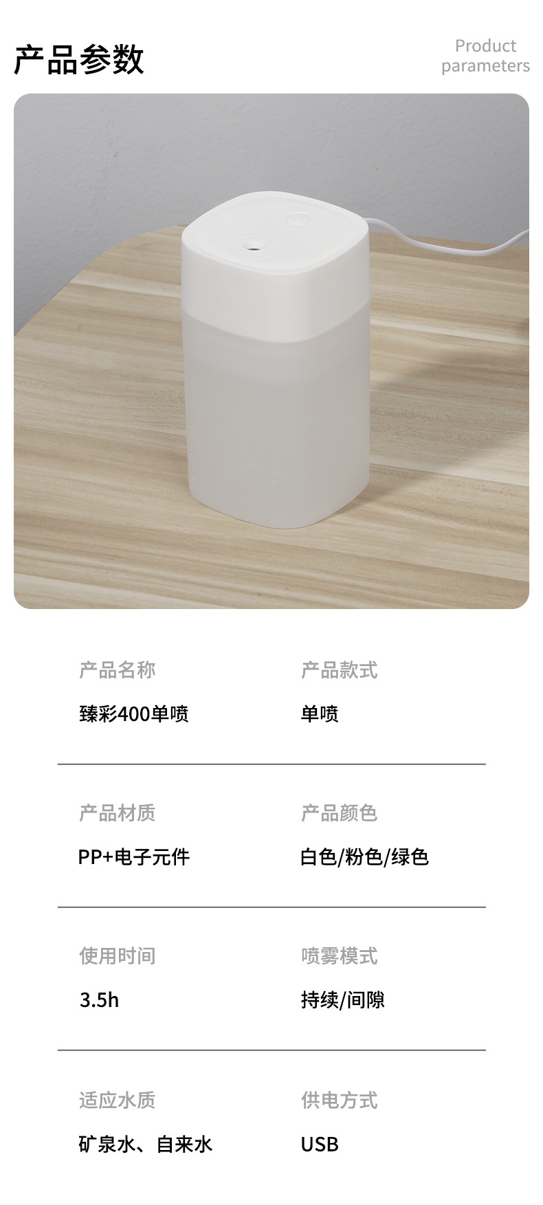 臻彩单喷400ml加湿器 迷你车载小型usb静音便携学生宿舍家用卧室 投诉