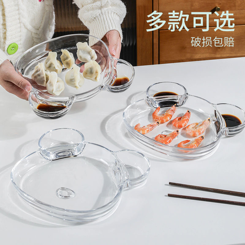 小熊PS碗饺子盘子带醋碟家用2023款蘸料一体盘分格网红创意餐JB 投诉