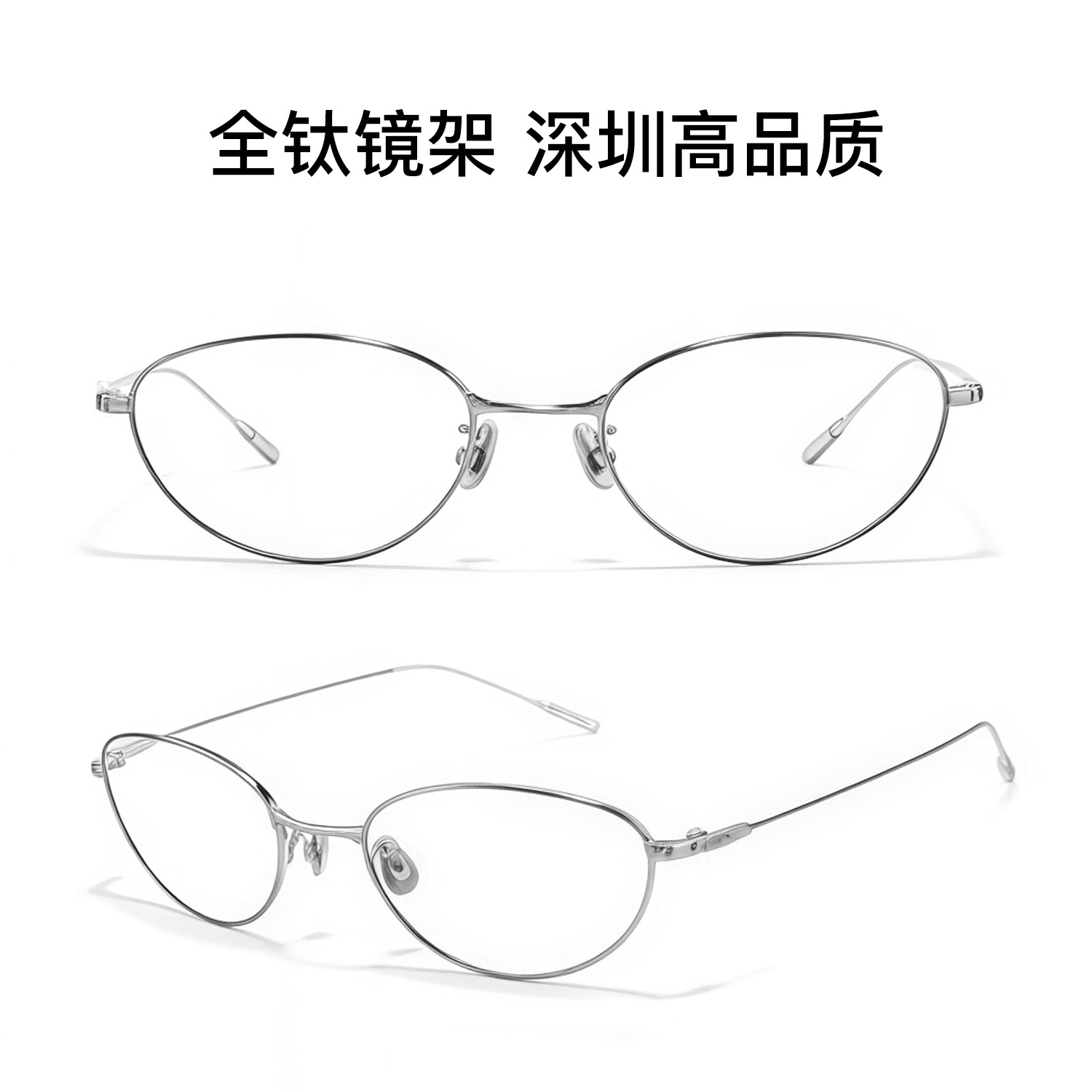 Fake系列新款高品质fade纯钛眼镜框银框近视猫眼轻舟眼镜
