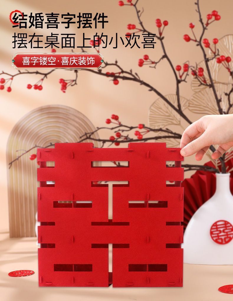 结婚立体喜字摆件订婚婚房婚礼客厅布置中式双喜摆台落地场景用品 投诉