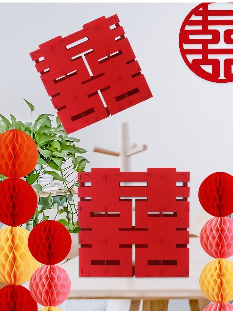 结婚立体喜字摆件订婚婚房婚礼客厅布置中式双喜摆台落地场景用品