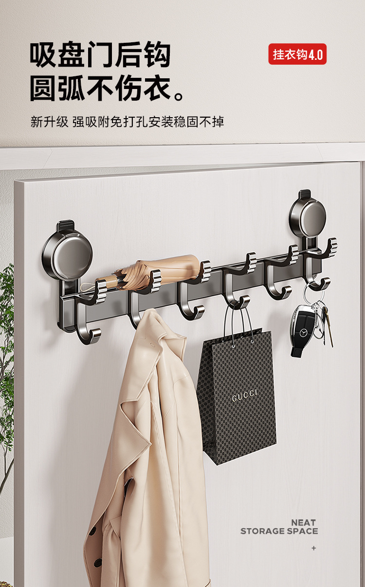 吸盘门口挂钩挂衣架免打孔排钩强力承重壁挂衣帽钩墙上挂衣架子