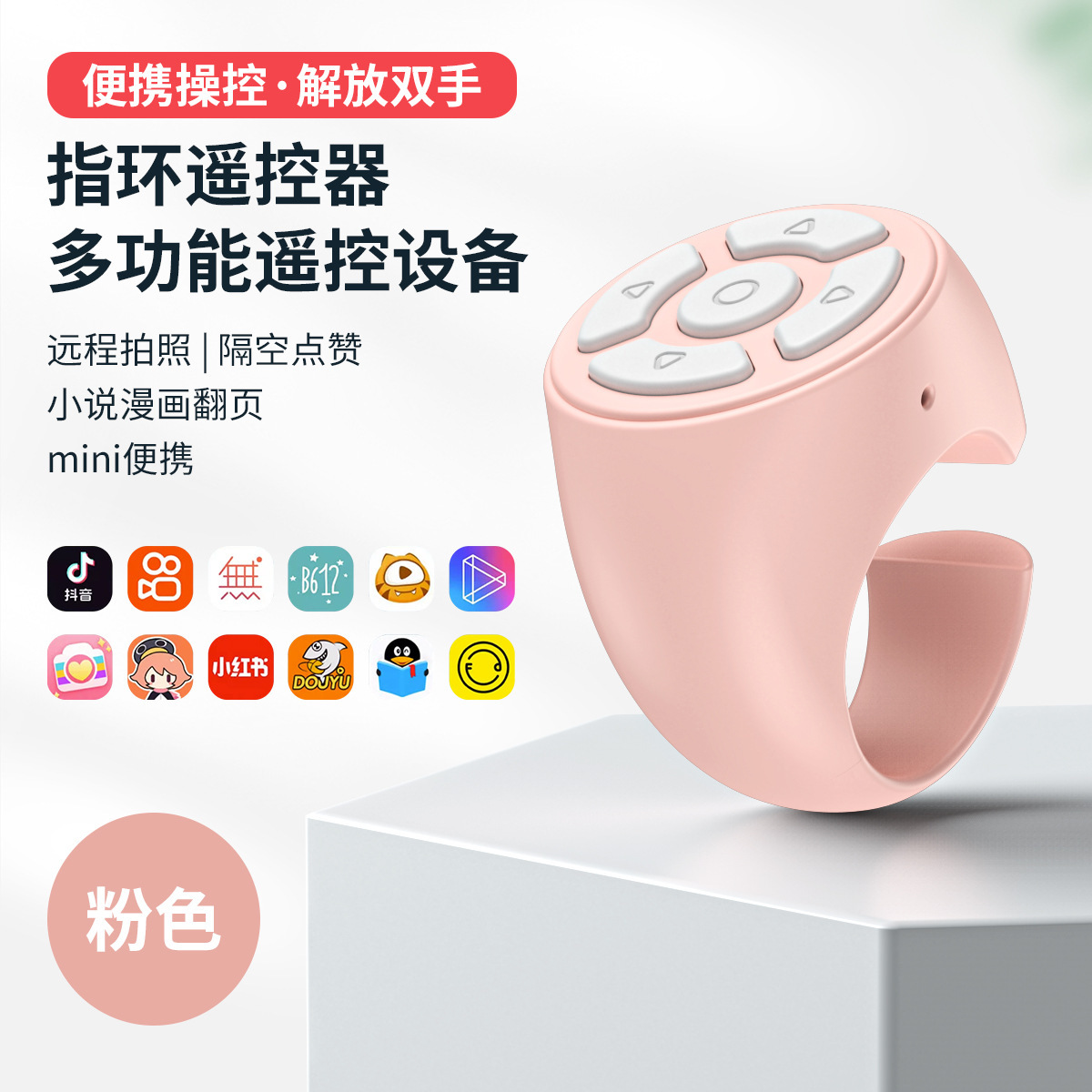 跨境蓝牙指环遥控器平板手机拍照控制器自拍神器抖音快手遥控翻页