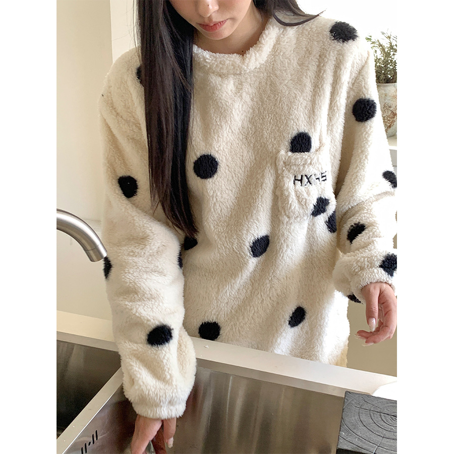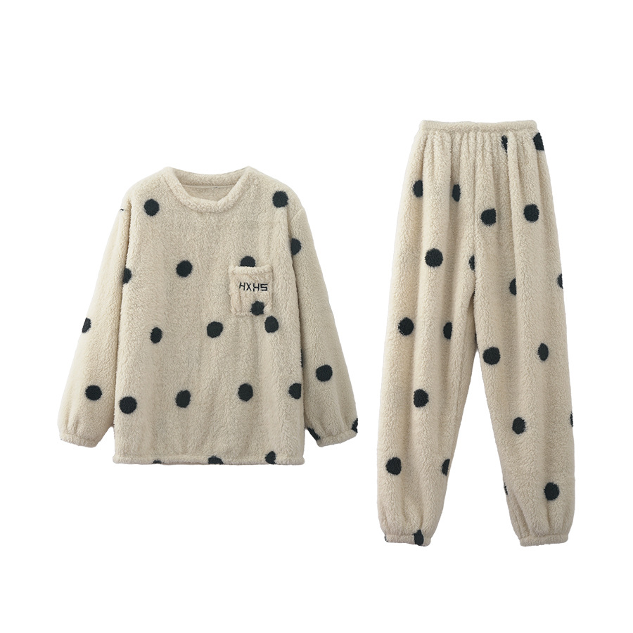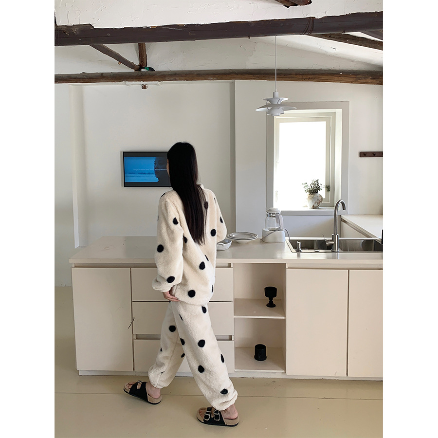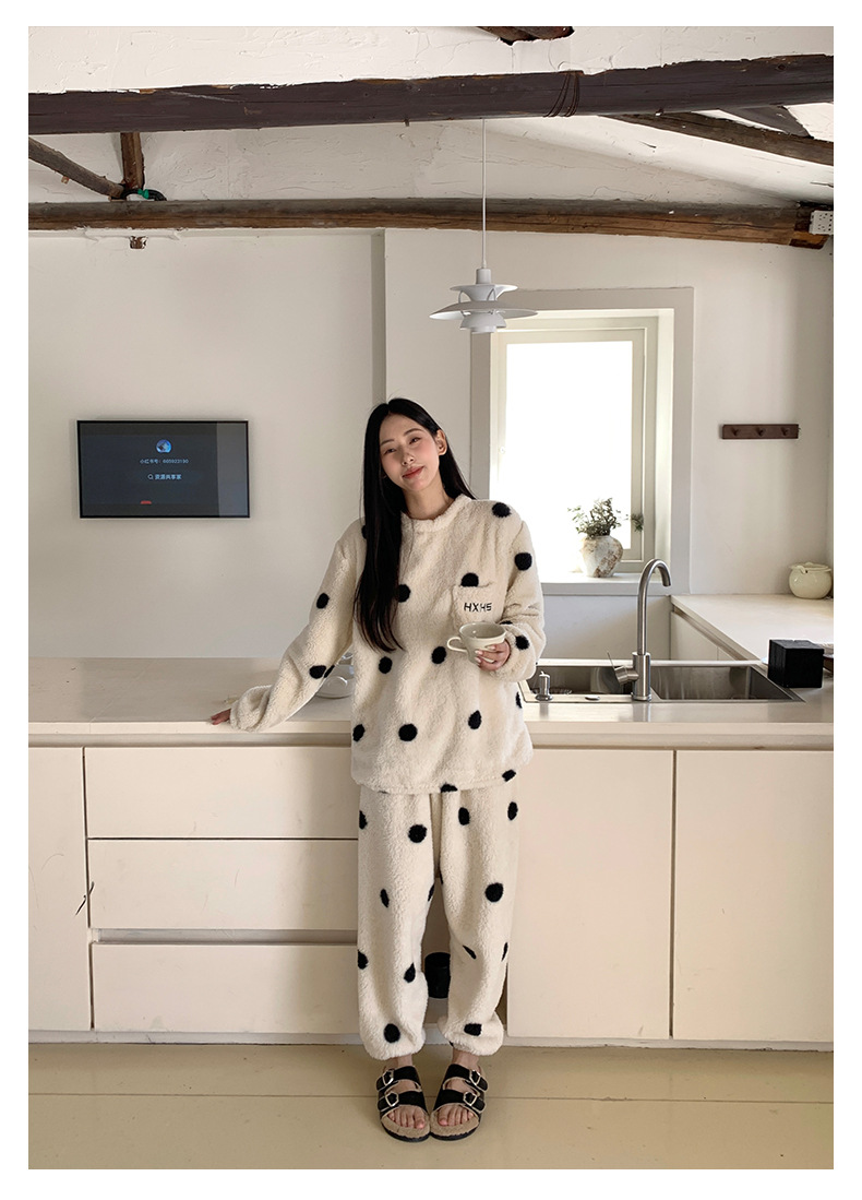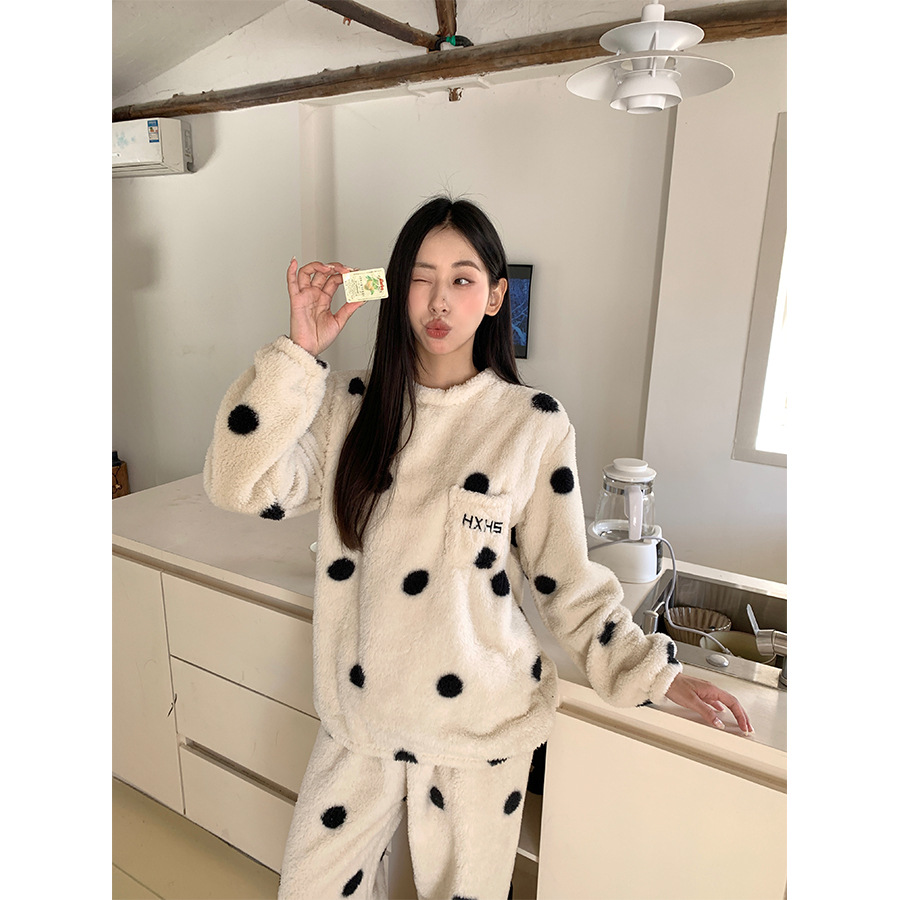 黄峥 韩系大波点奶牛睡衣套装2024冬季加厚保暖两件套女145ZY1024