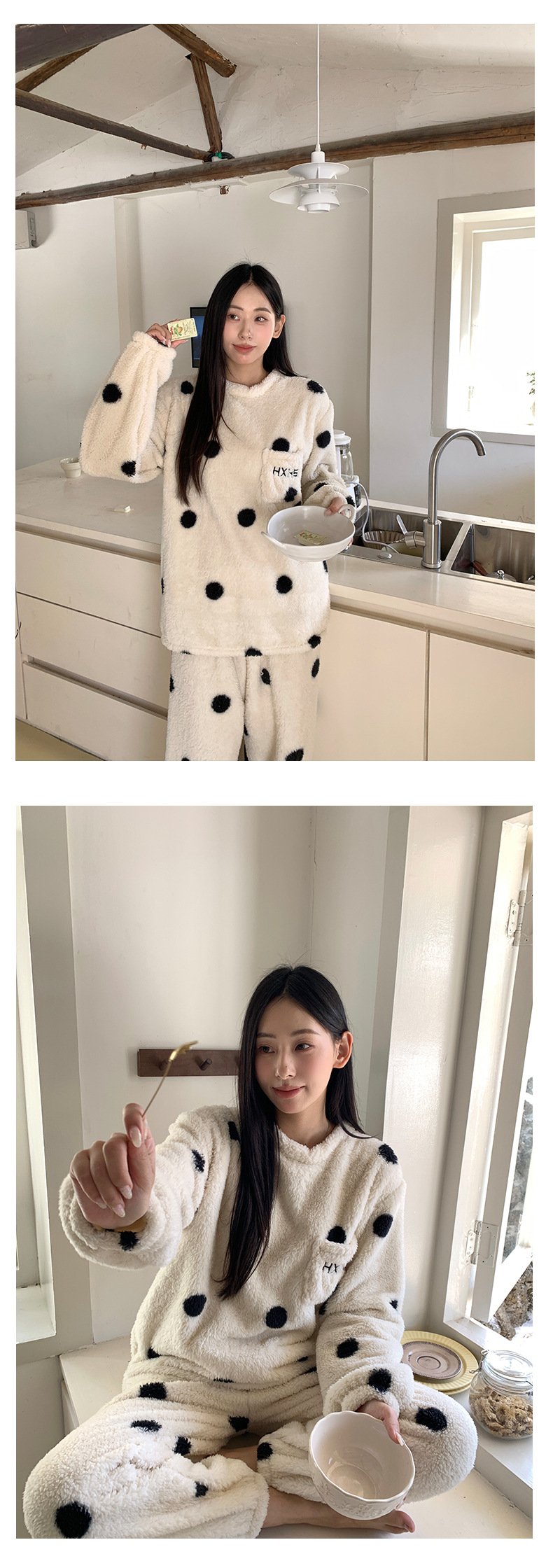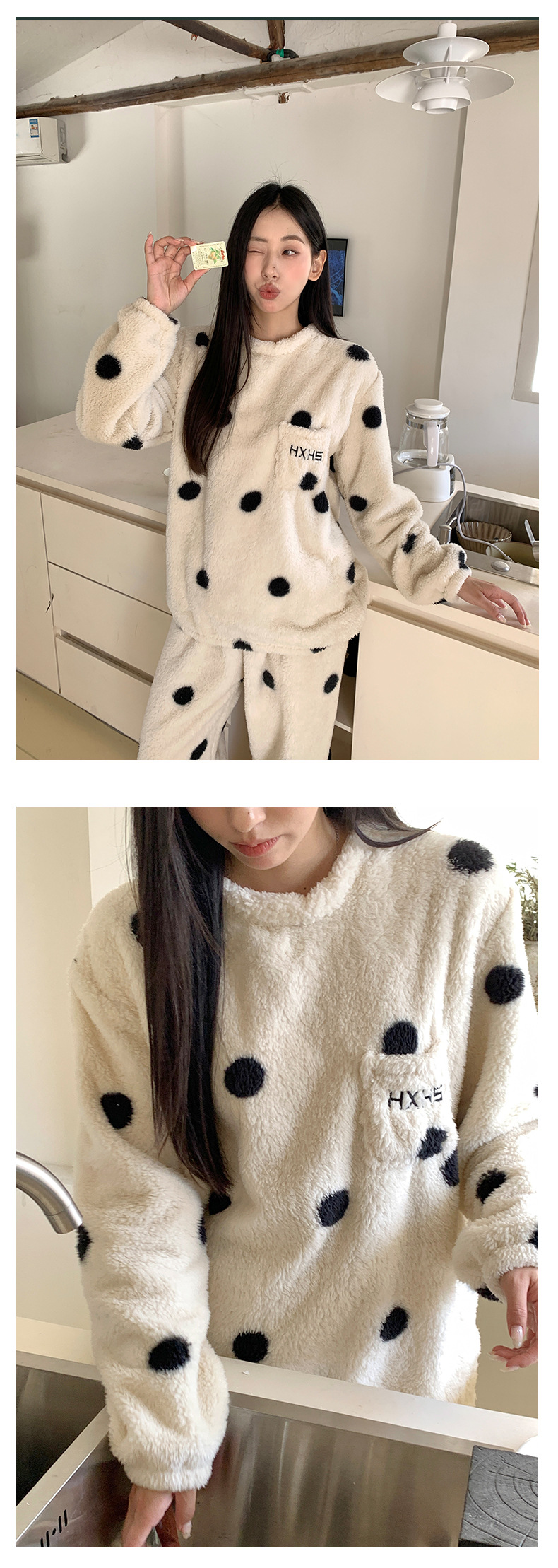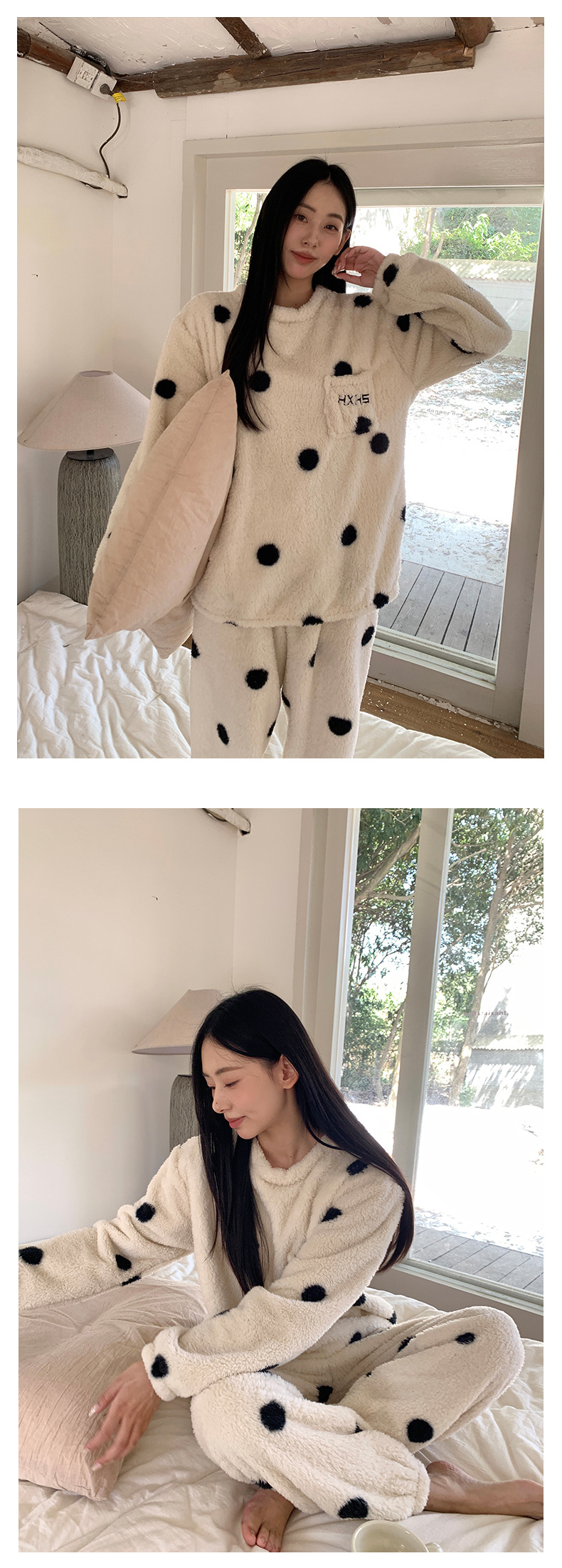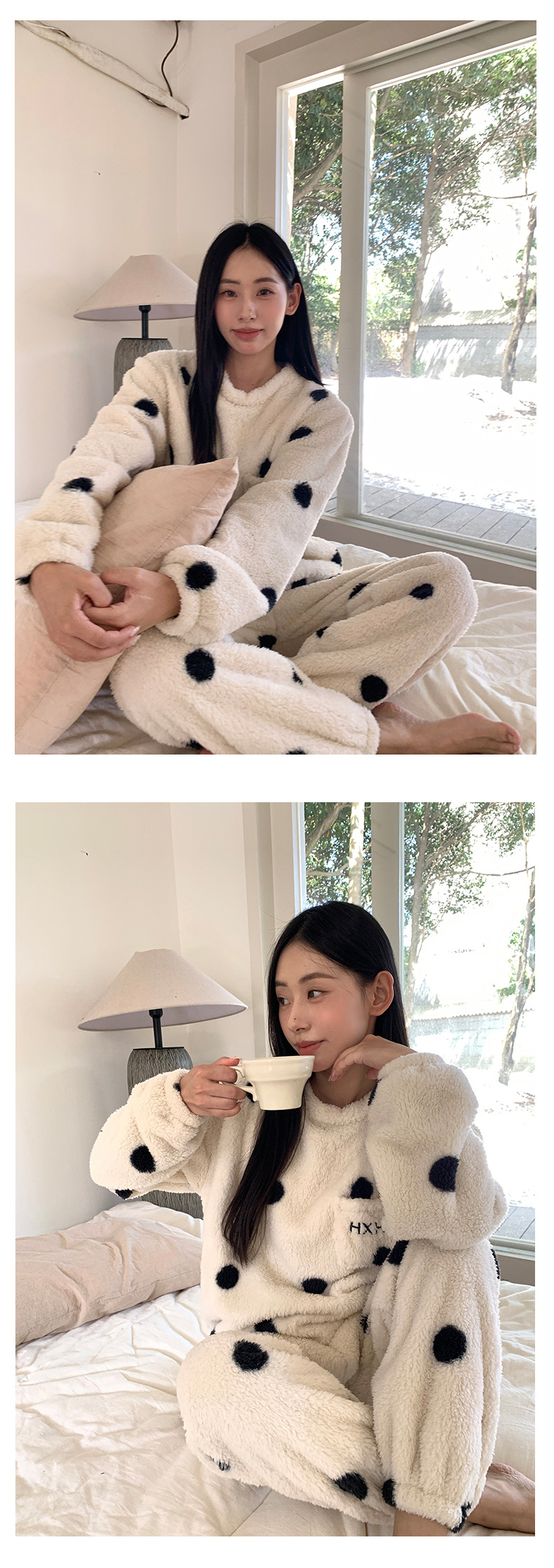 黄峥 韩系大波点奶牛睡衣套装2024冬季加厚保暖两件套女145ZY1024