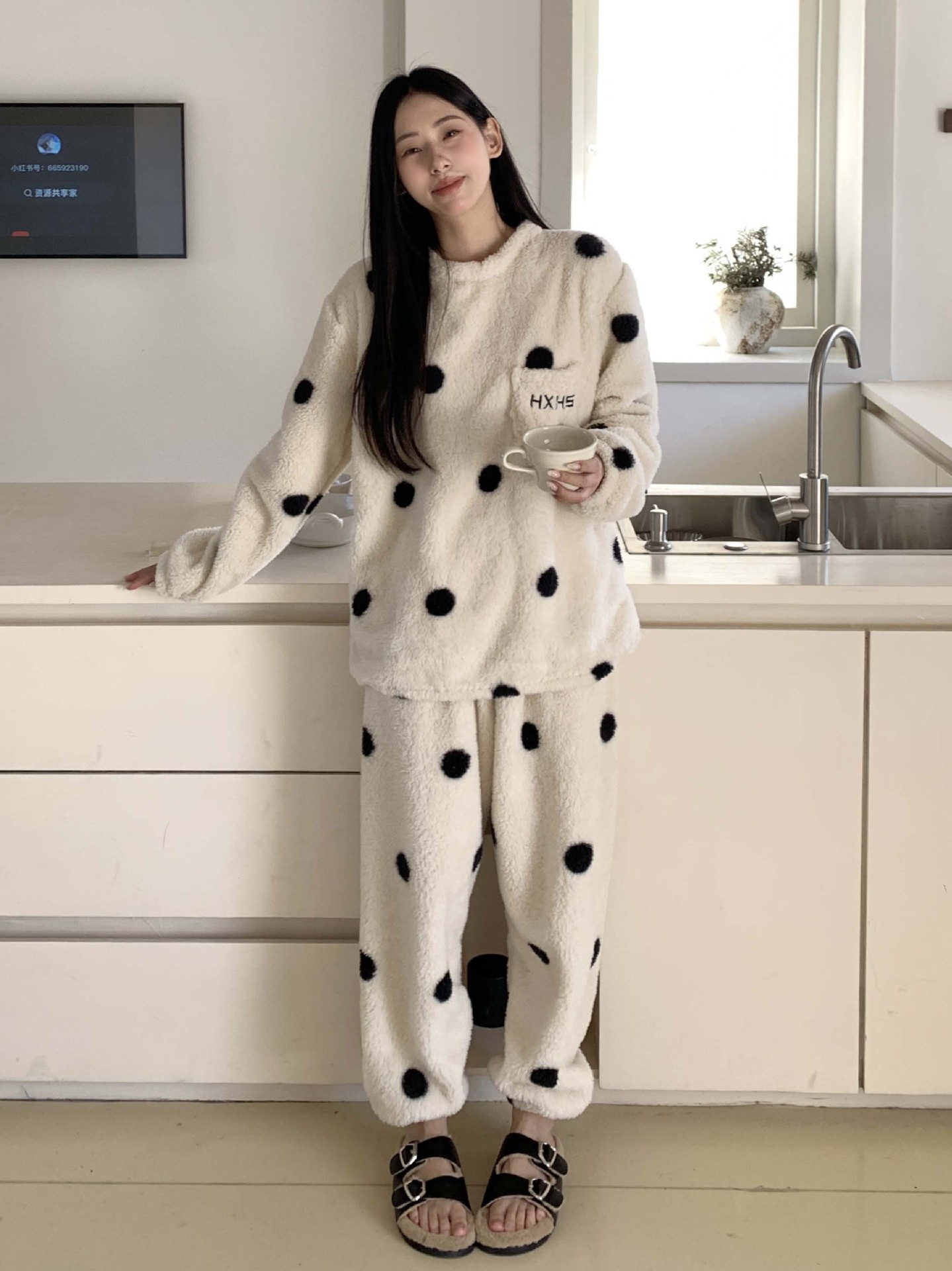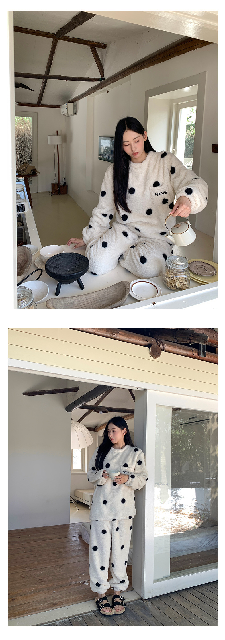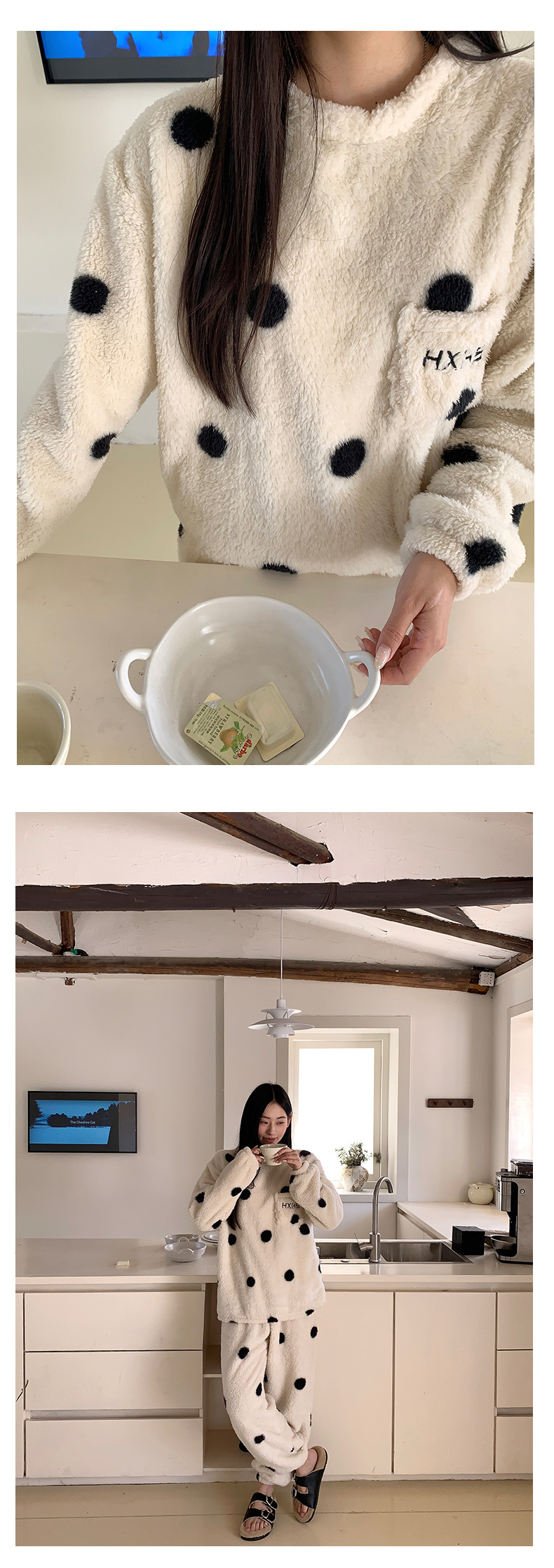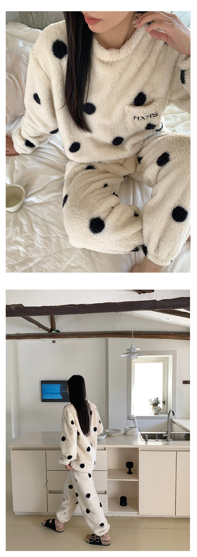 黄峥 韩系大波点奶牛睡衣套装2024冬季加厚保暖两件套女145ZY1024