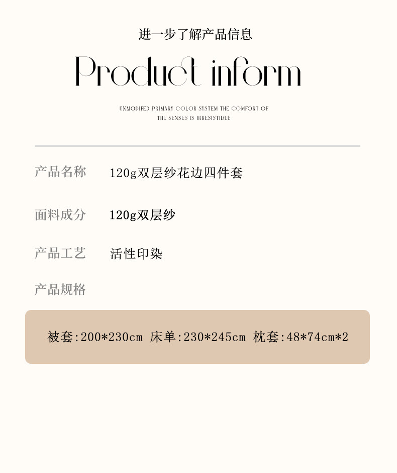 | 1.8床四件套(被套200*230cm) | ¥10680 | 80套可售 |