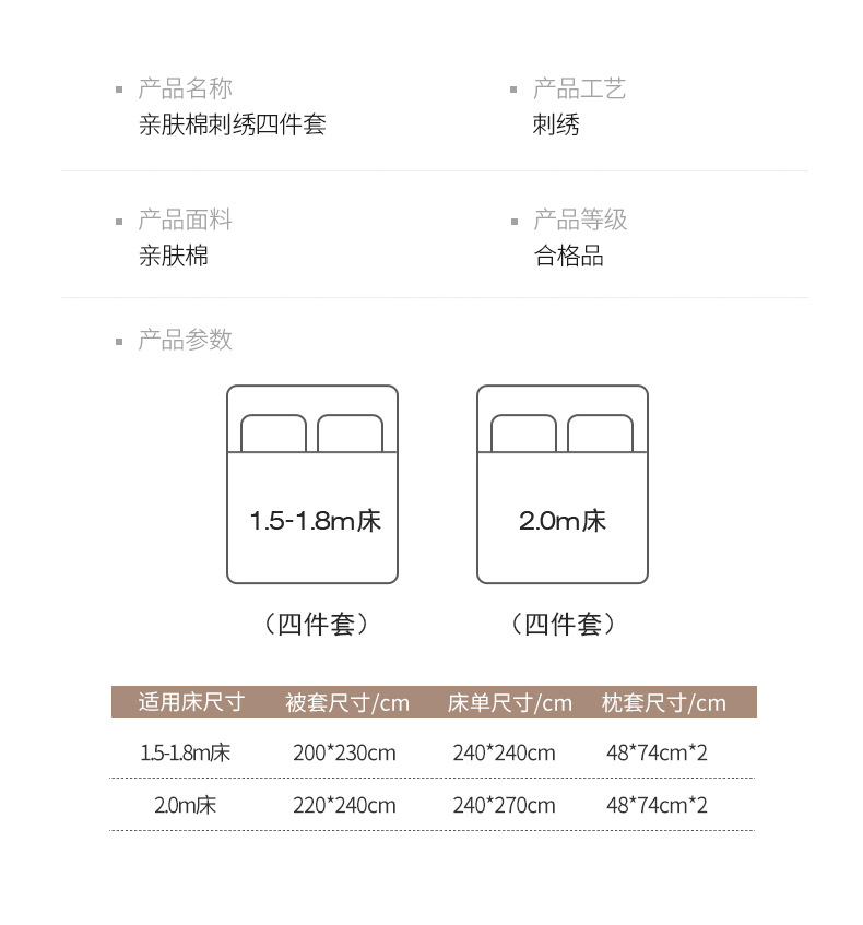 | 2.0m床单款四件套【被套220*240床单240*270枕套48*74*2 | ¥23522 | 3332套可售 |