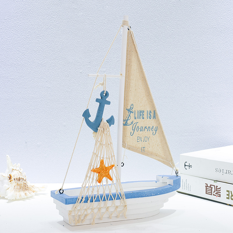 | 产品名称:地中海风格 创意木制帆船蓝白布帆船 家居办公室装饰品 |