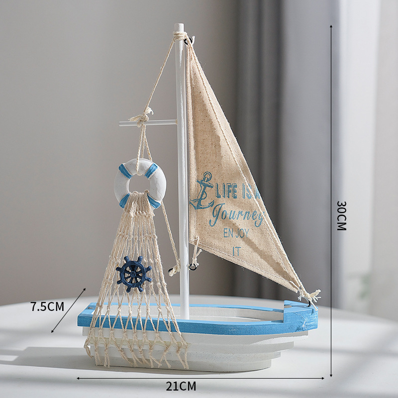 本款木质帆船是一款纯手工制作的工艺品,是地中海风格钟非常亮眼的摆饰细节逼真,造型美观大方,适合办公或者家居摆设,以及赠与他人,有“一帆风顺”的美好寓意。