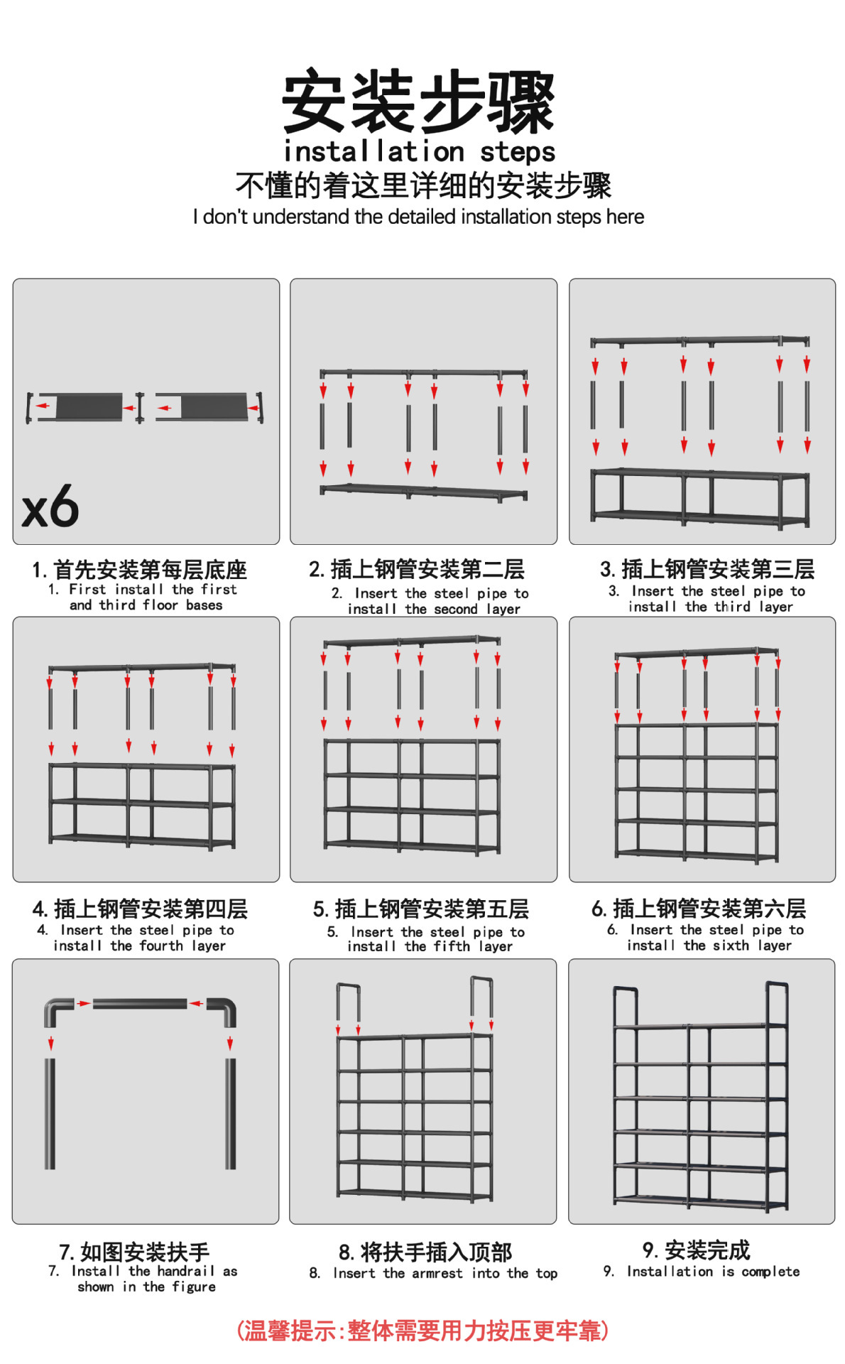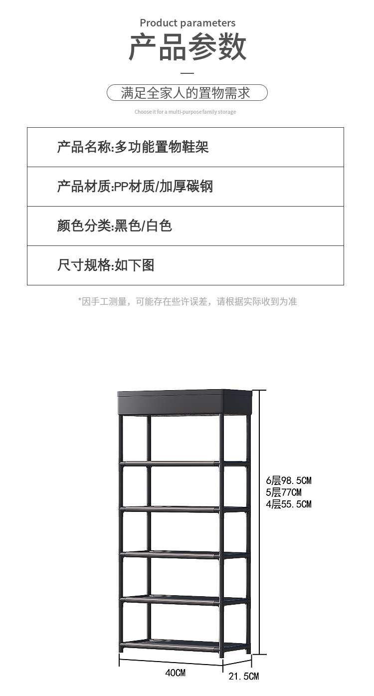 商品净重:单排置物鞋架4层0.78kg/5层0.9kg/6层1.01kg