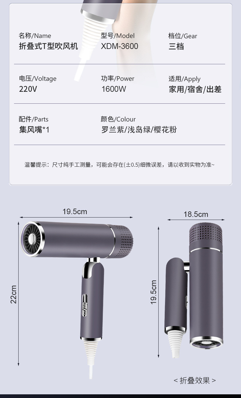 3600折叠吹风机 罗兰紫 ¥0 10000件可售