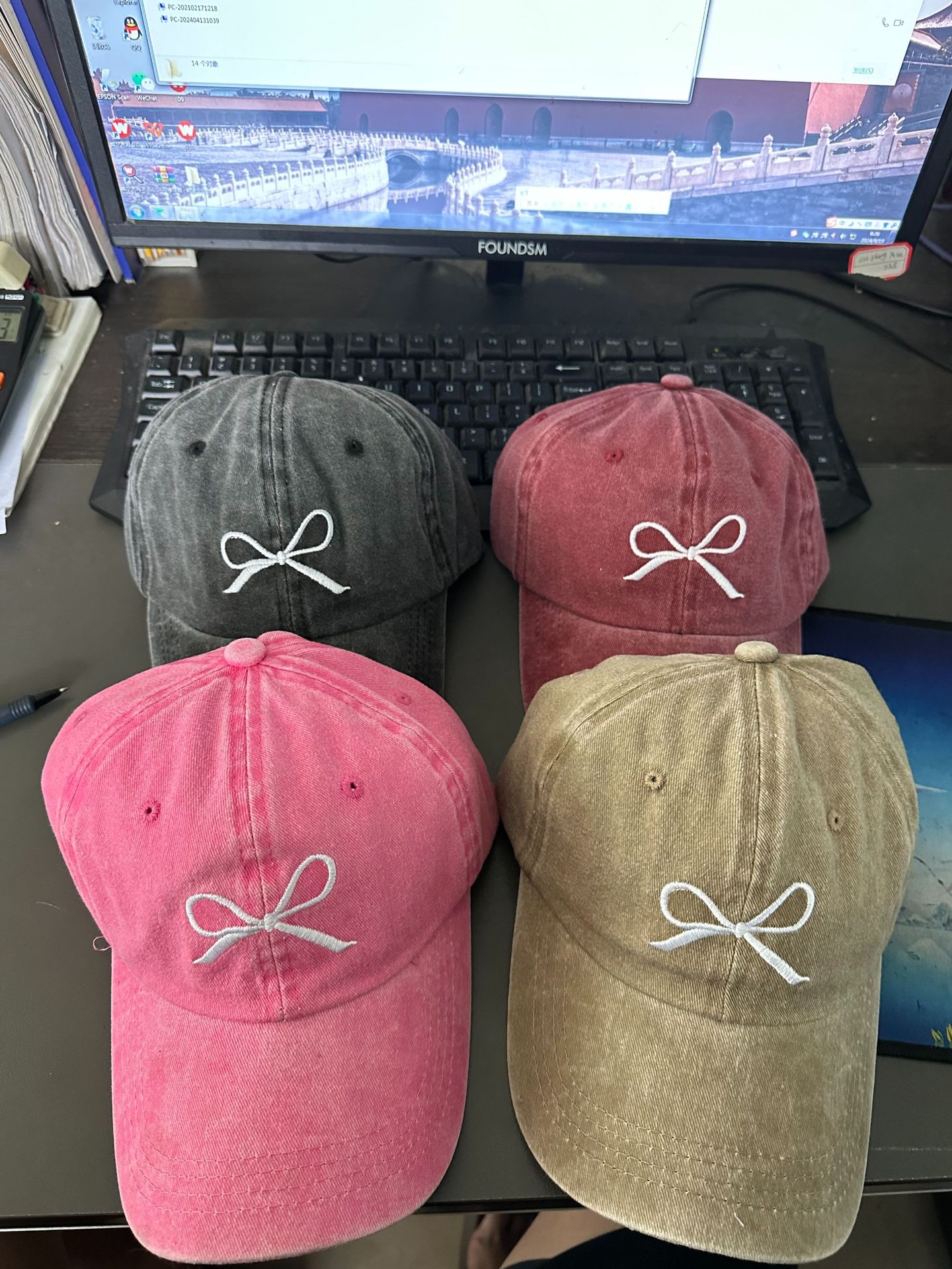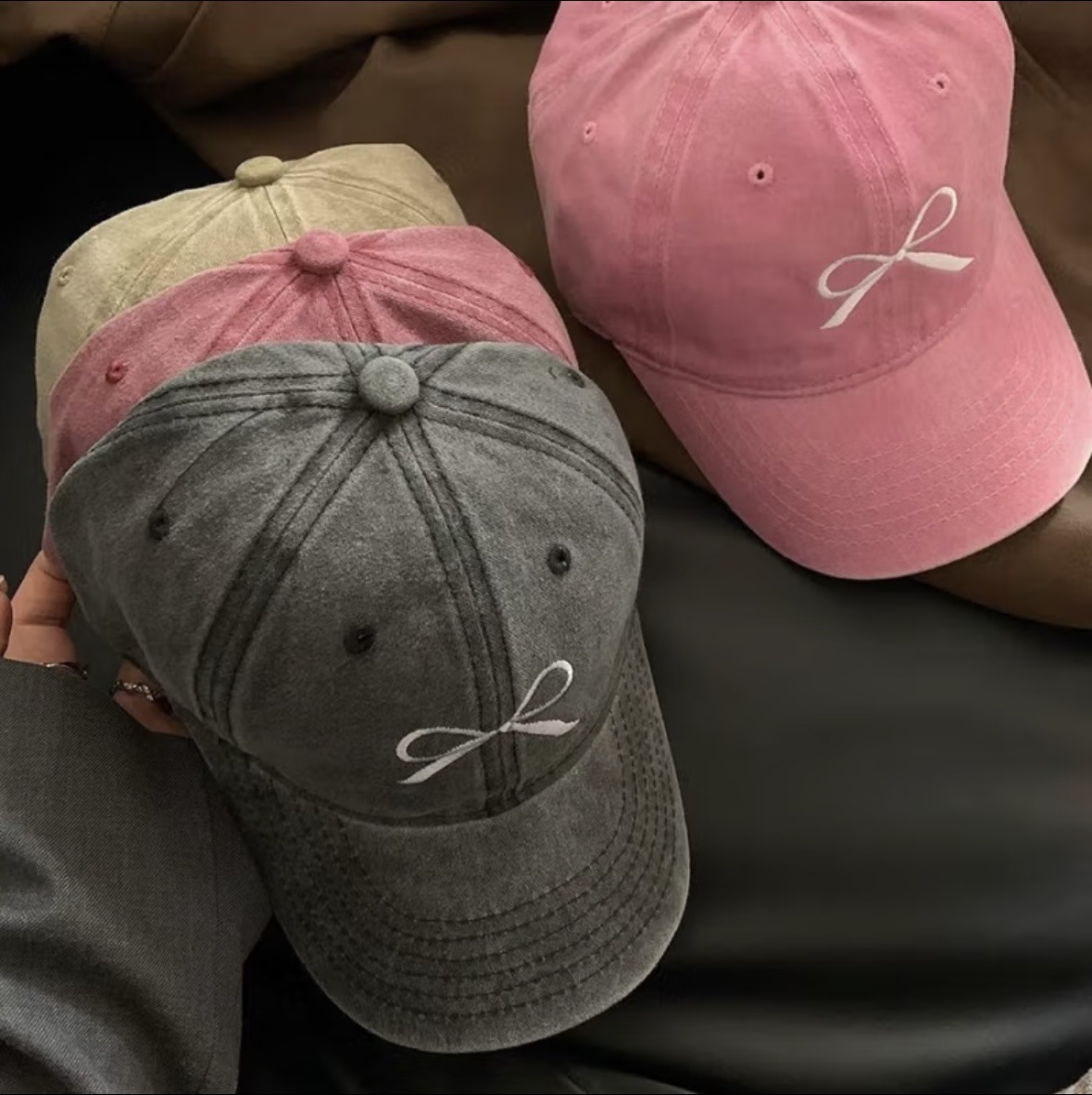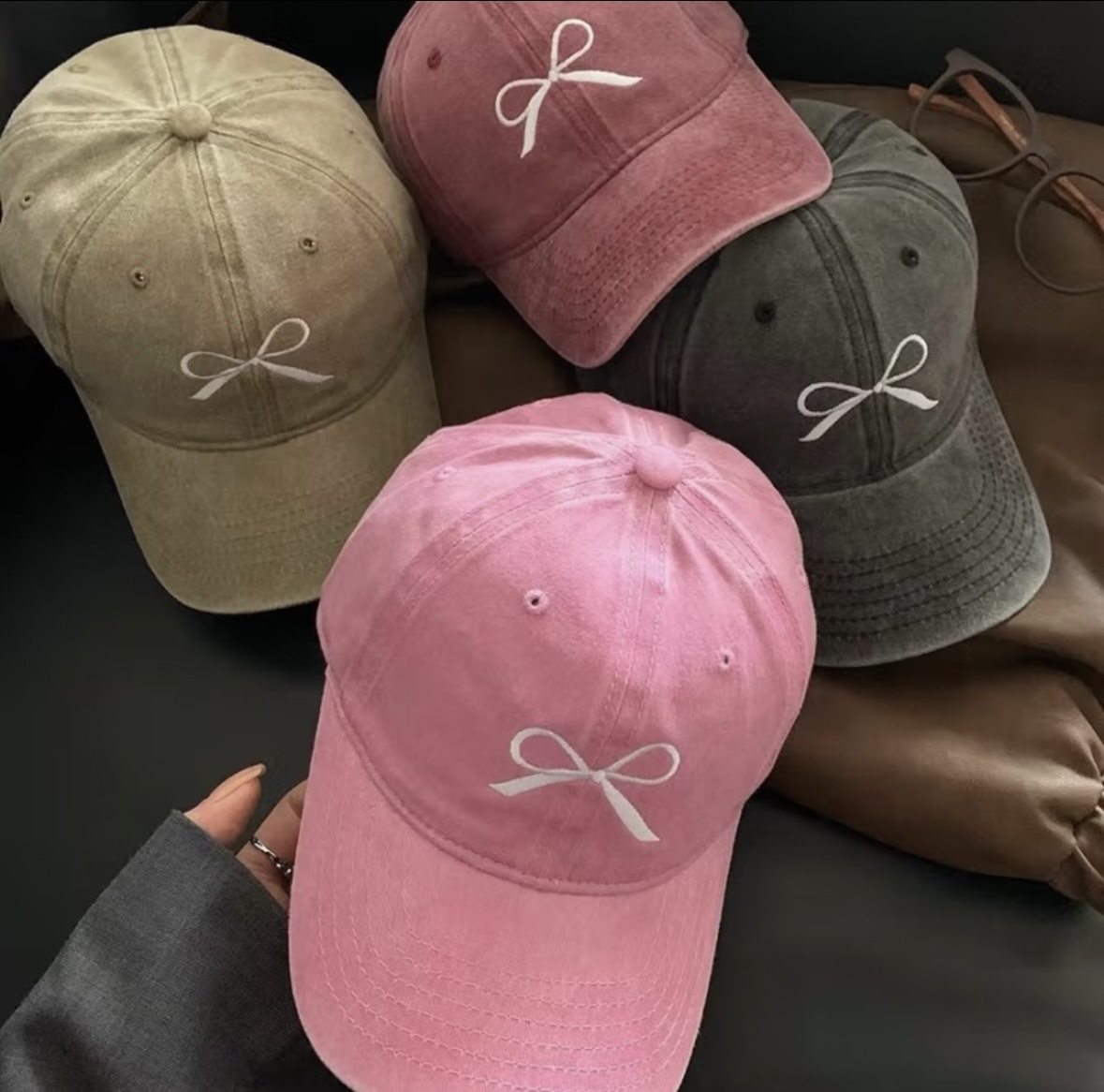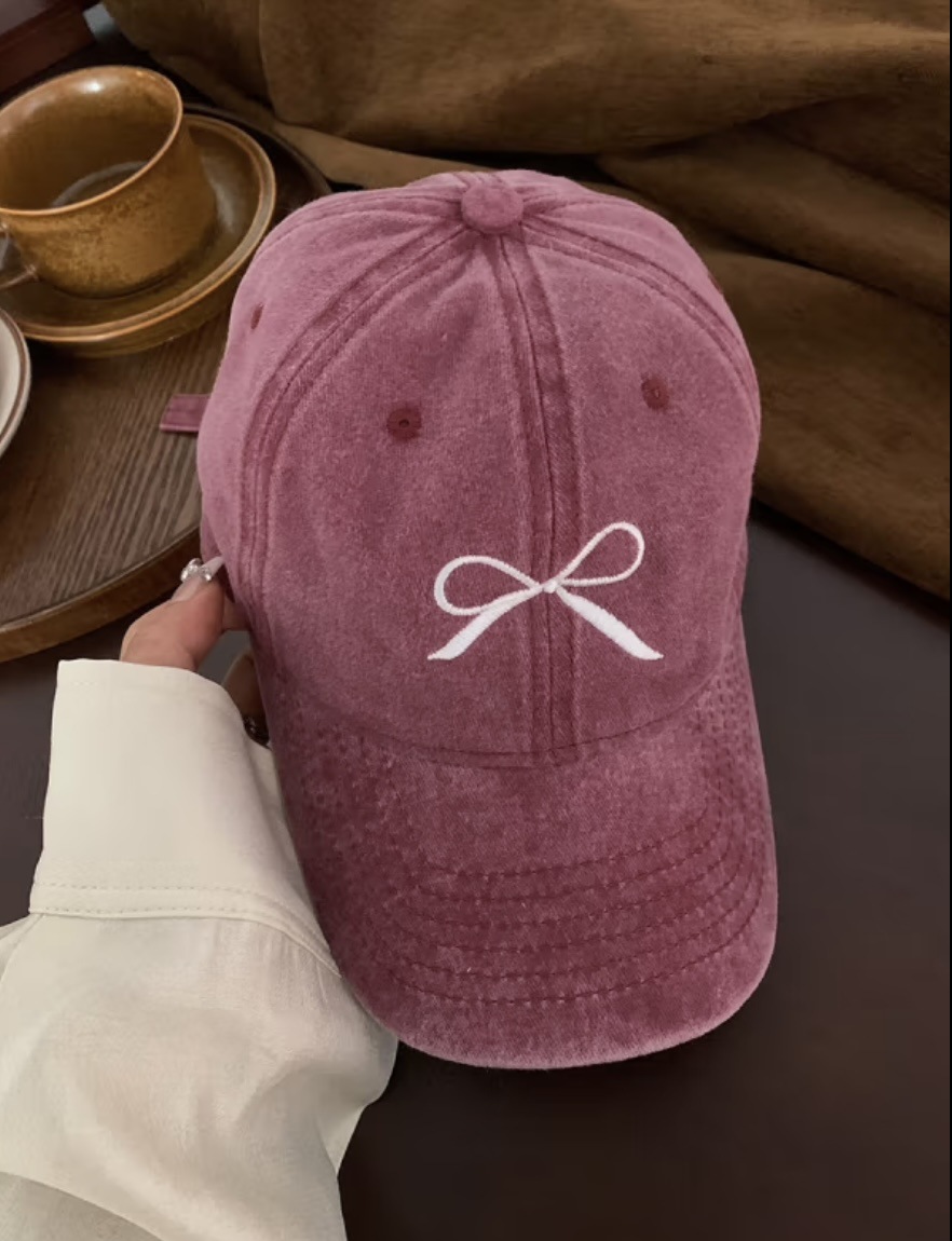 2024秋季新款棒球帽蝴蝶结刺绣鸭舌帽做旧美式潮流宽檐遮脸鸭舌帽