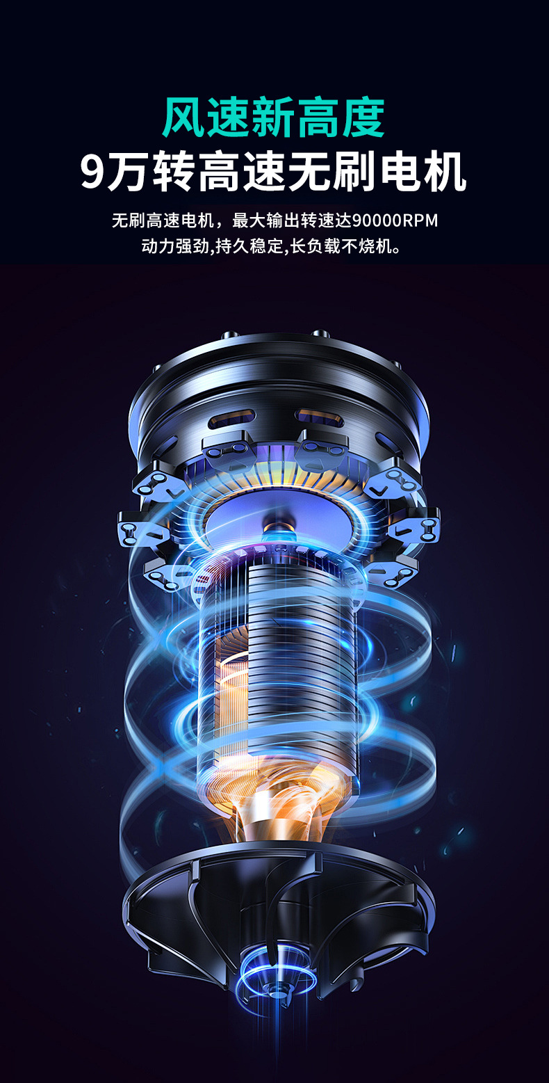 暴力涡轮风扇高速增压飓风吸尘吹尘器手持无线迷你便携式暴力风扇