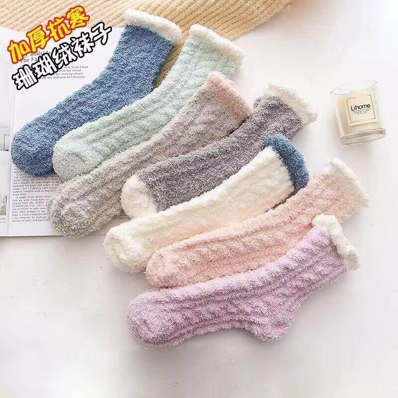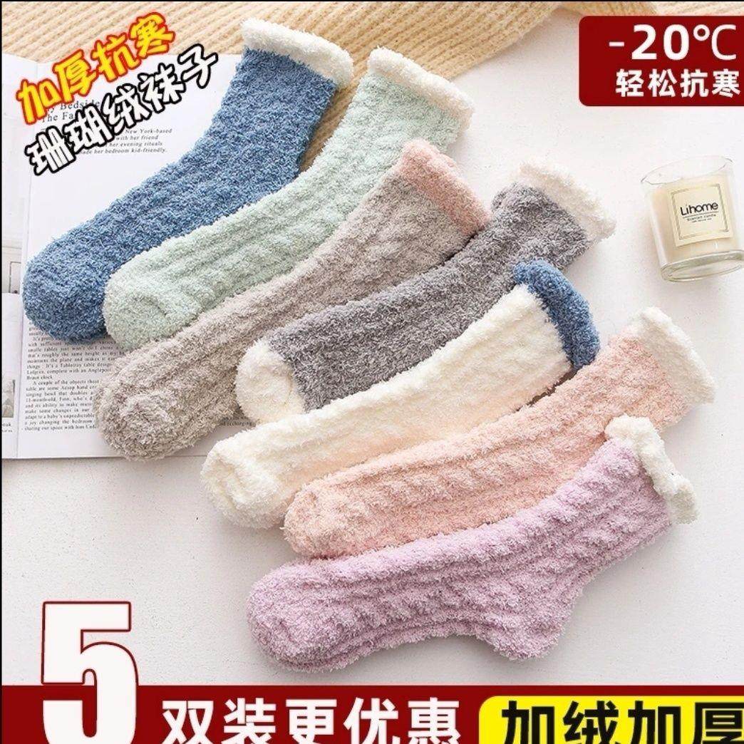 珊瑚绒月子袜子女产后秋冬加绒加厚居家袜睡眠毛绒保暖孕妇地板袜