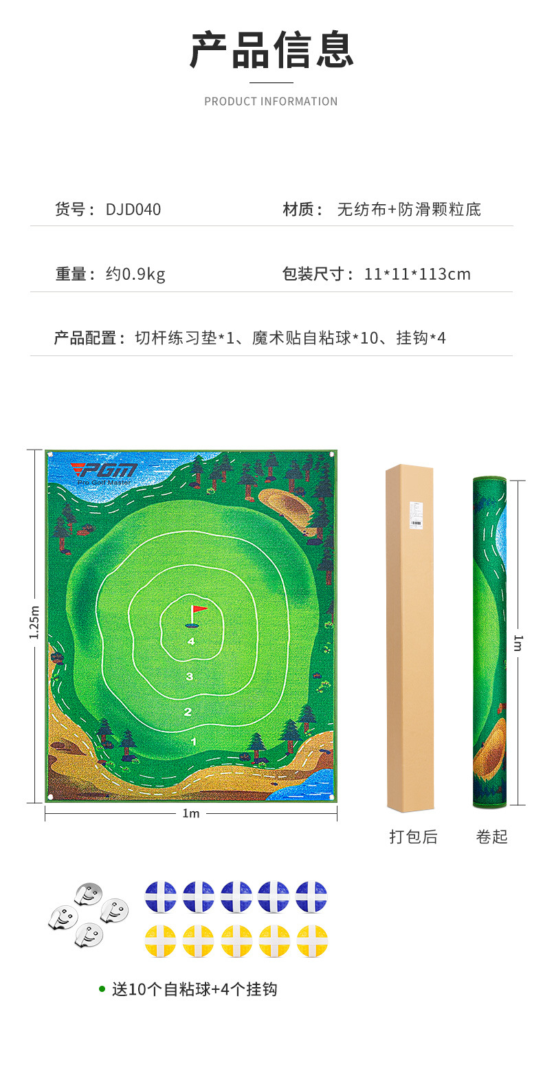 | 产品配置 | 1张切杆练习垫+10个魔术贴自粘球+4个挂钩 | |||