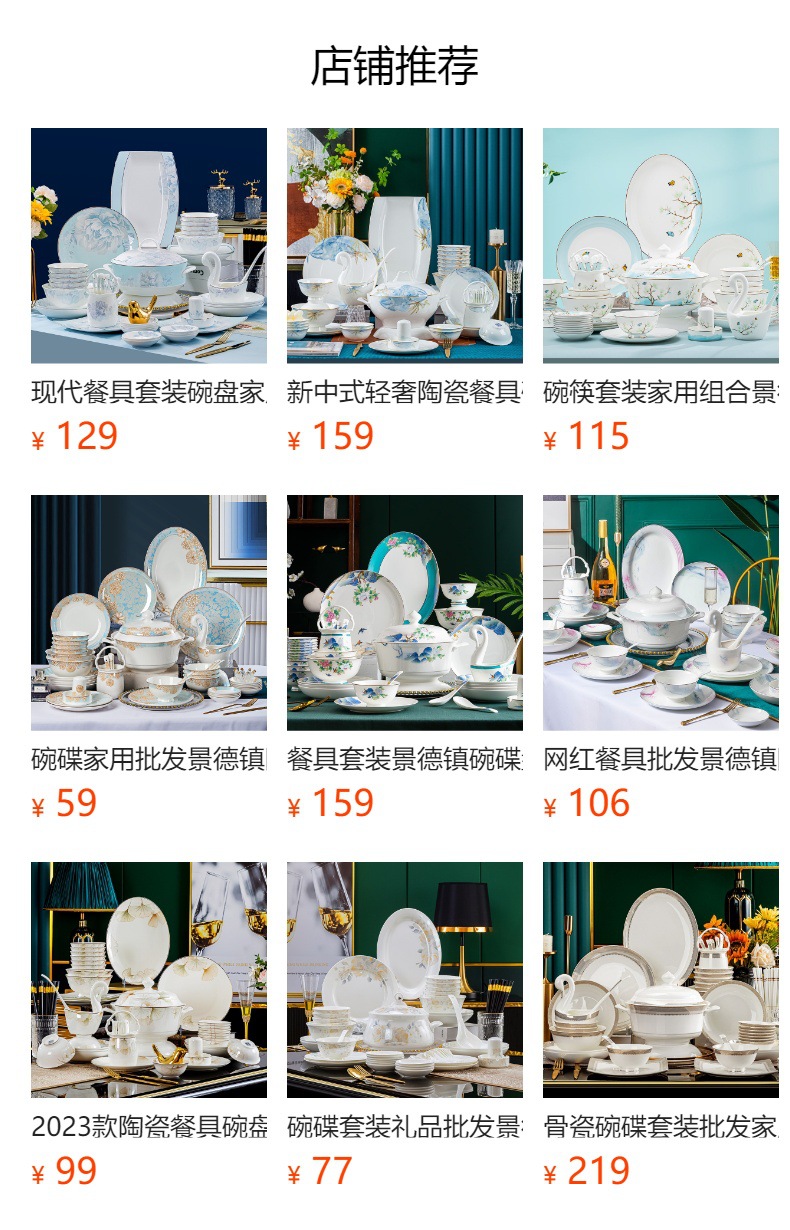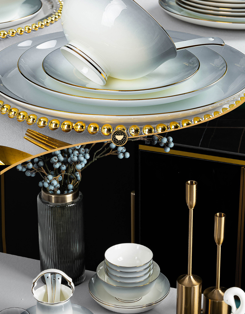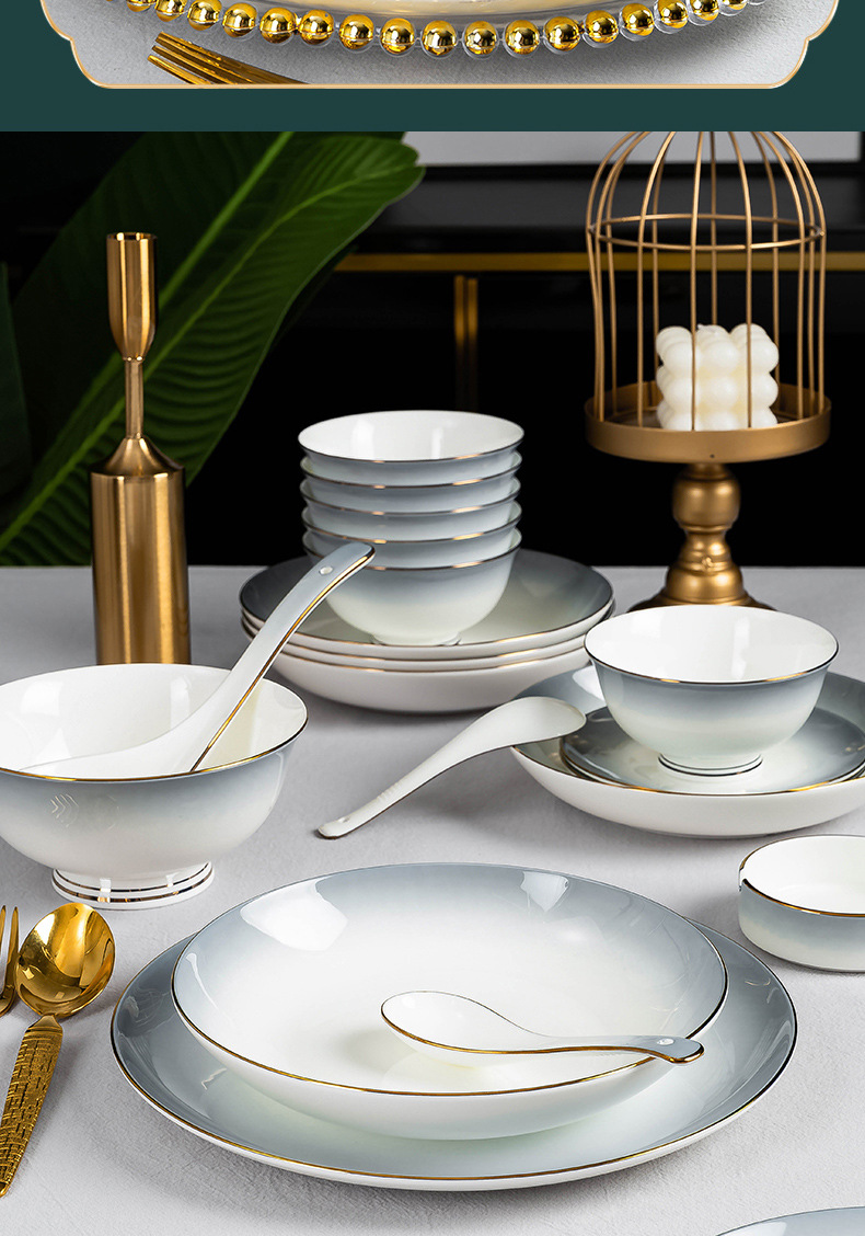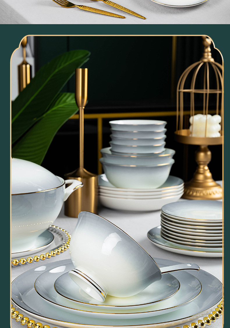 陶瓷餐具碗蝶批发景德镇高级骨瓷碗盘碟组合礼品碗筷套装乔迁送礼 English | 投诉