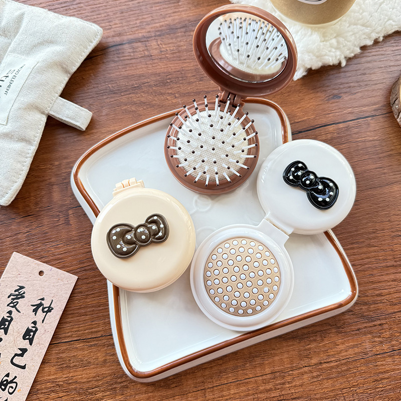 可爱蝴蝶结气垫梳折叠镜梳一体卡通美发梳便携女生气囊梳子按摩梳 投诉