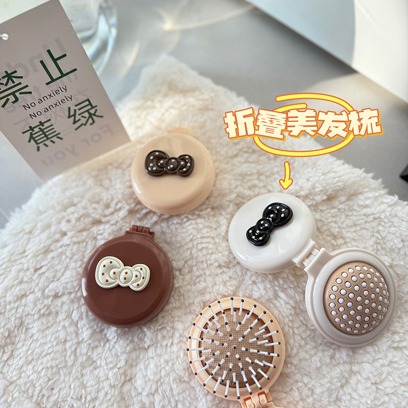 可爱蝴蝶结气垫梳折叠镜梳一体卡通美发梳便携女生气囊梳子按摩梳