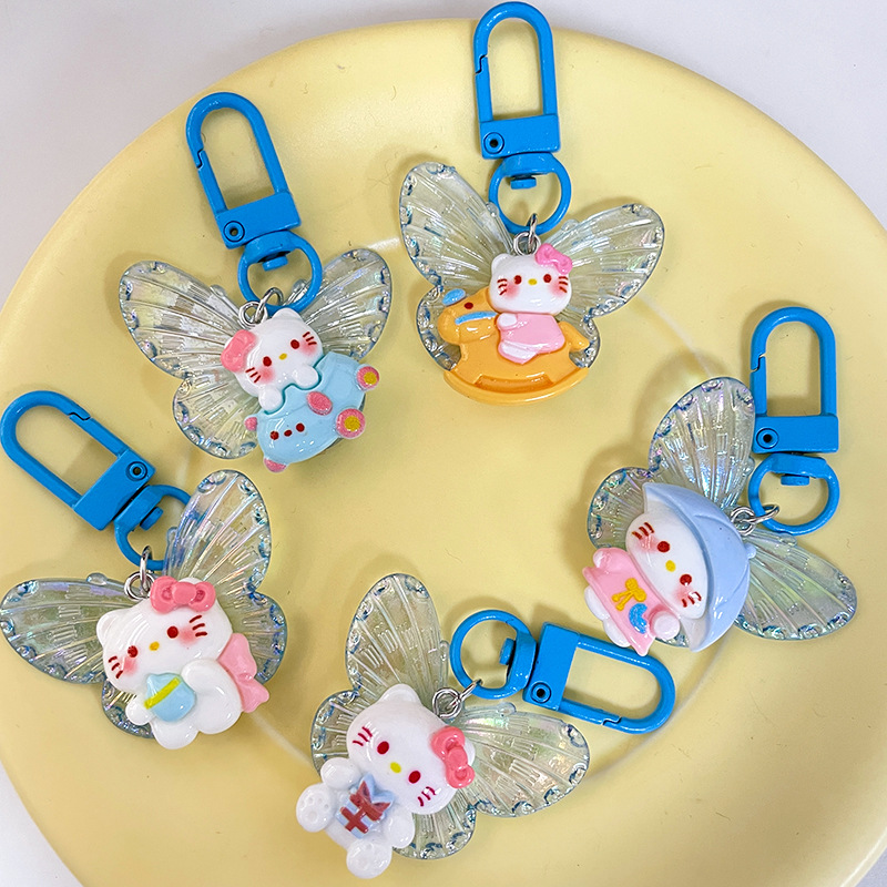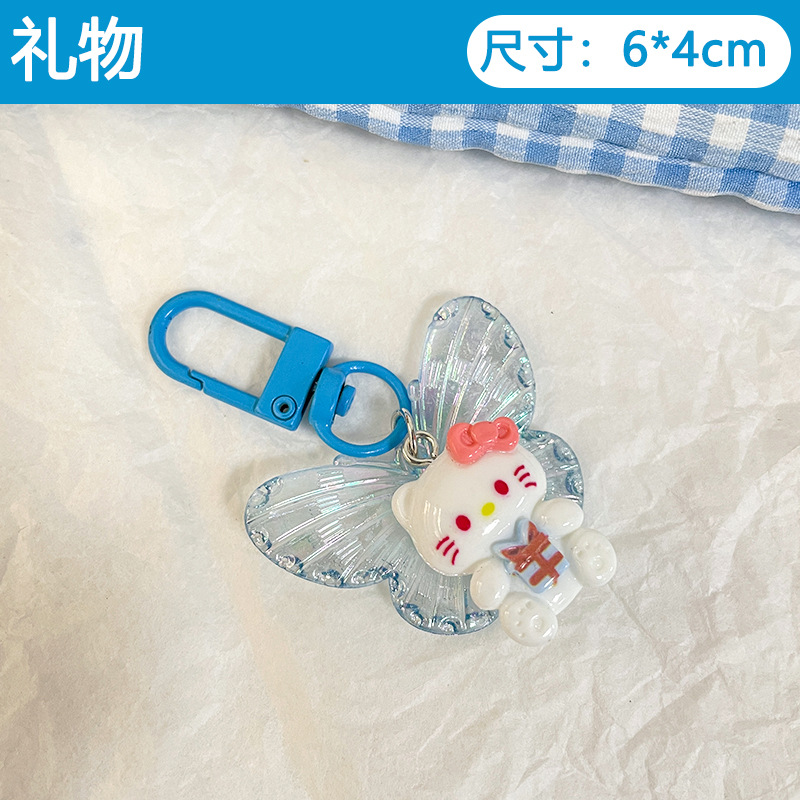 新款卡通细闪蝴蝶小猫钥匙扣可爱少女甜美挂件情侣闺蜜配饰钥匙链