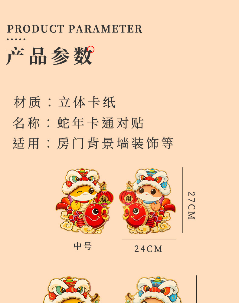 | 蛇年卡通对贴 | ¥356 | 2812对可售 |