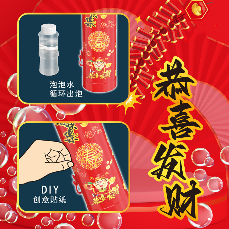 泡泡机爆竹烟花灯光音效全自动出泡泡机网红批发儿童电动泡泡玩具