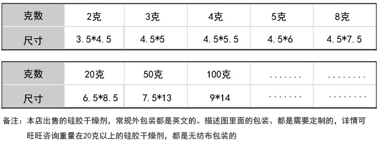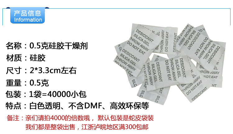 | 0.5克opp袋干燥剂(按5000倍数) | ¥0 | 999999袋可售 |