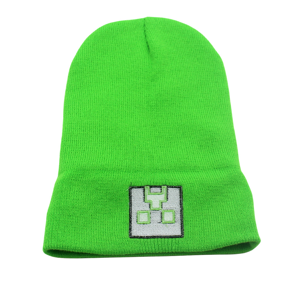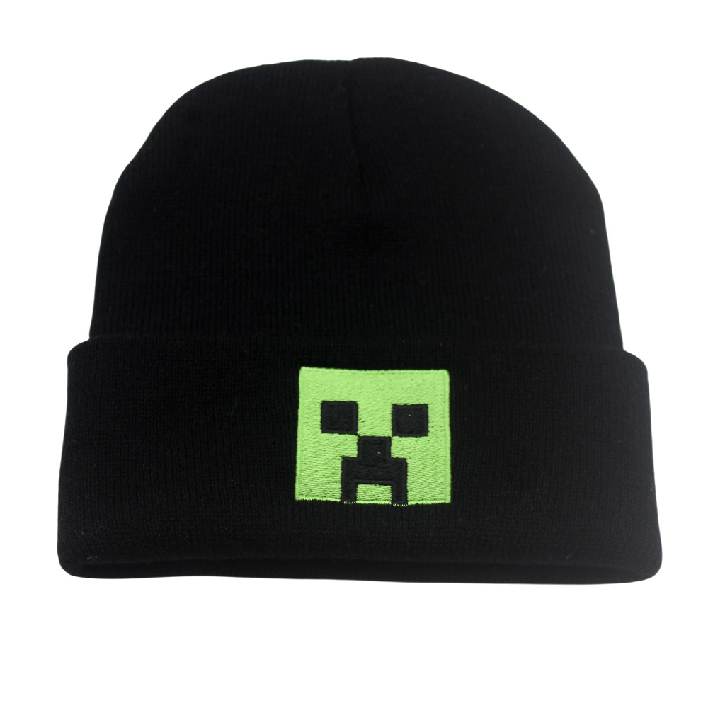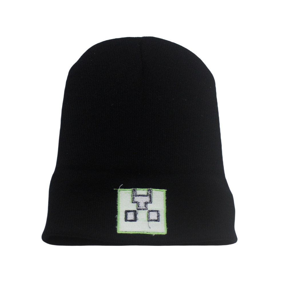 跨境新款我的世界刺绣针织帽秋冬保暖动漫卡通男女百搭套头毛线帽