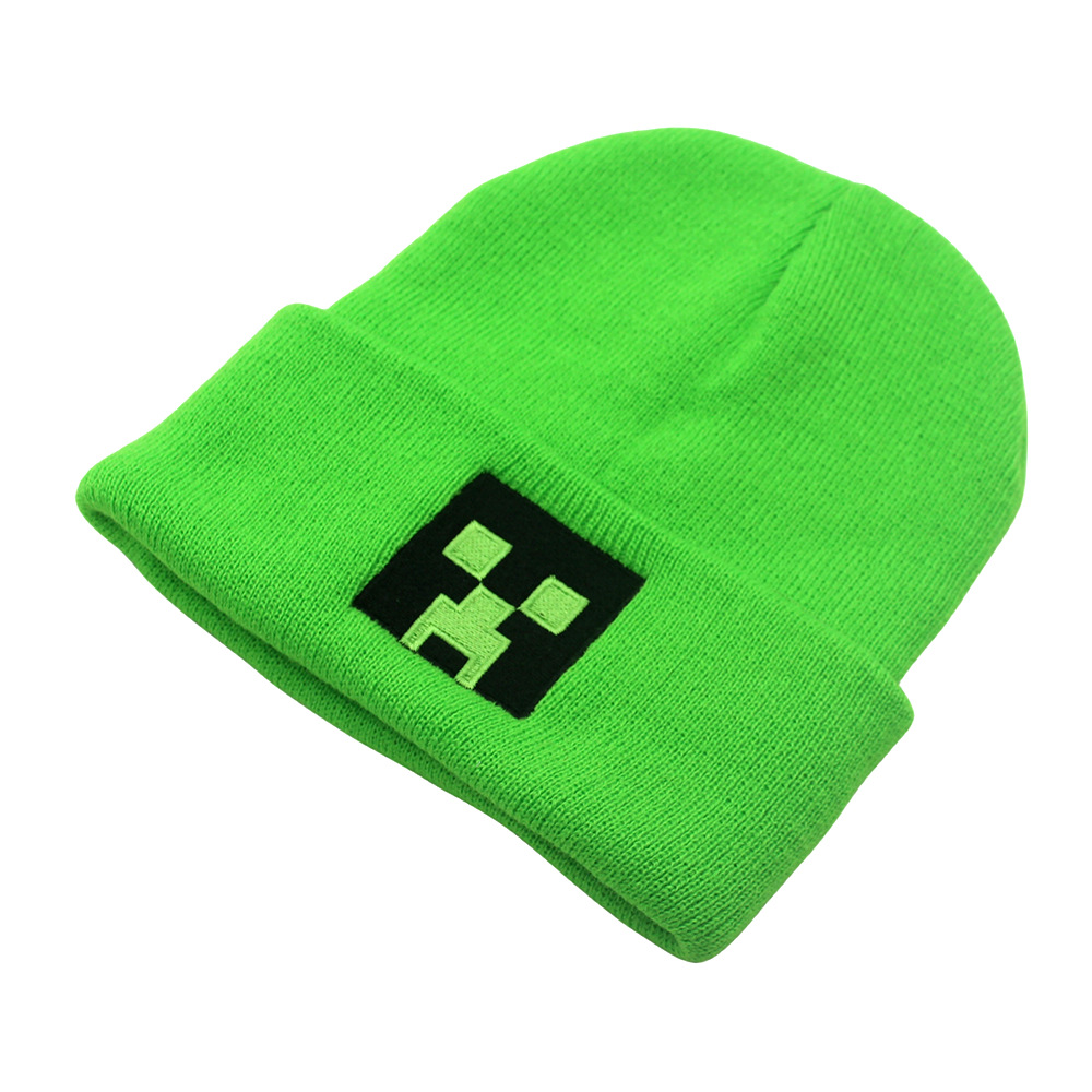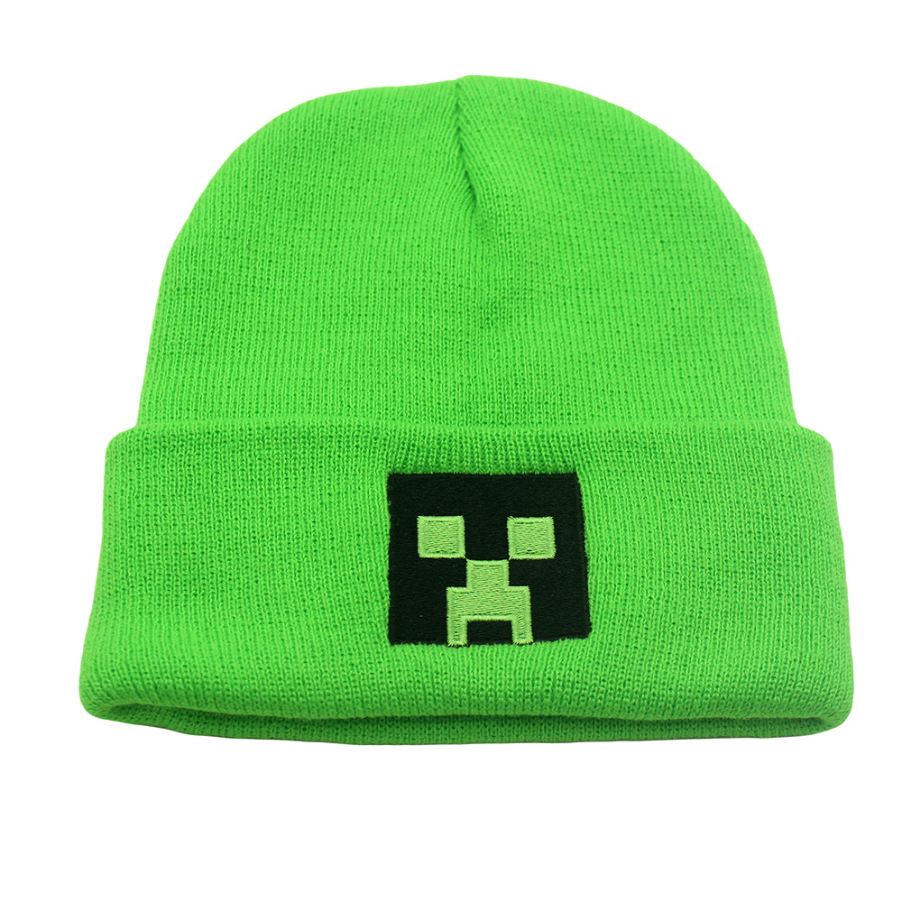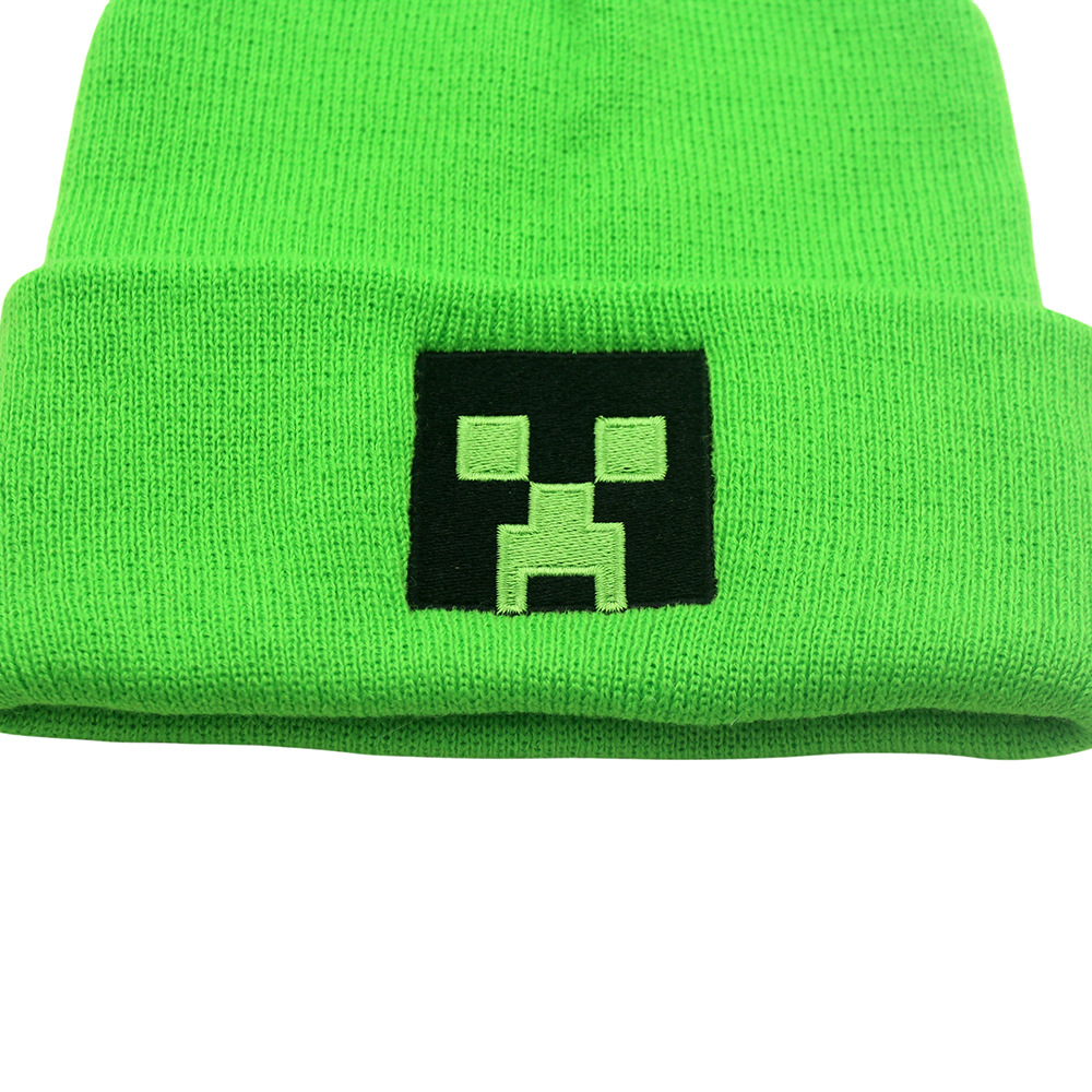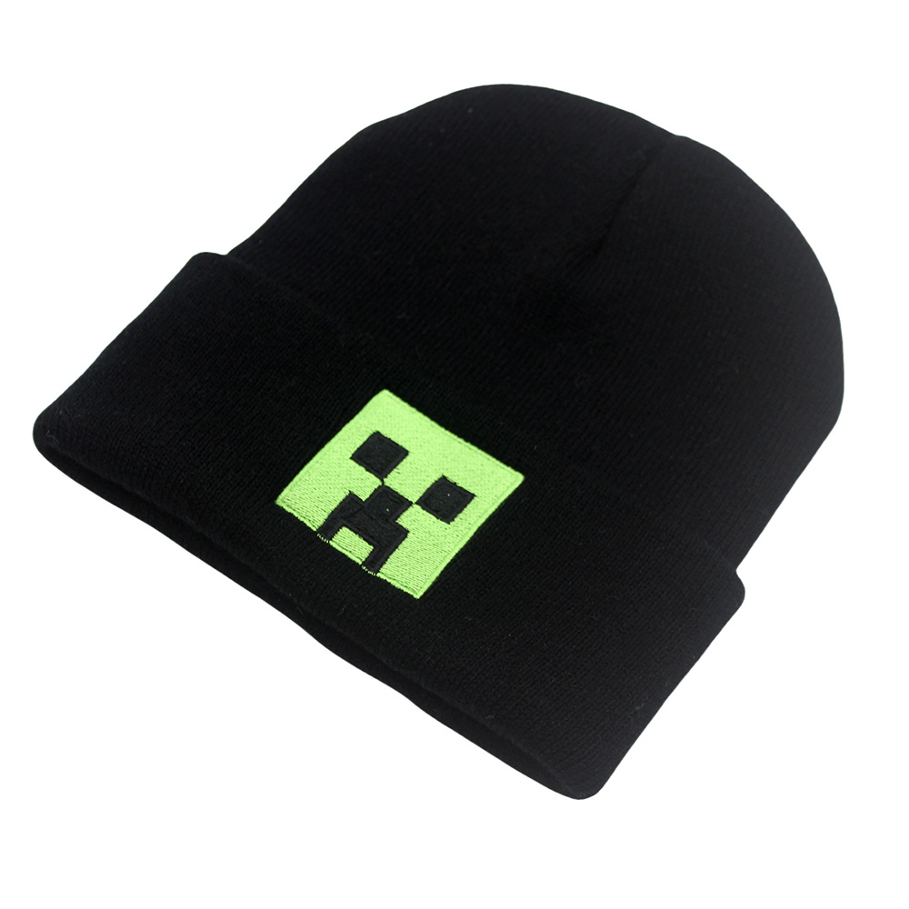 跨境新款我的世界刺绣针织帽秋冬保暖动漫卡通男女百搭套头毛线帽