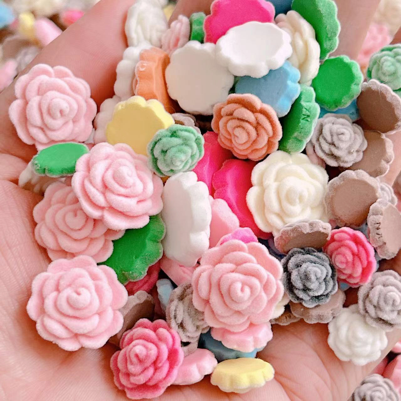 XN植绒想念配件diy大小混彩色山茶花毛绒树脂饰品配件秋冬发夹贴
