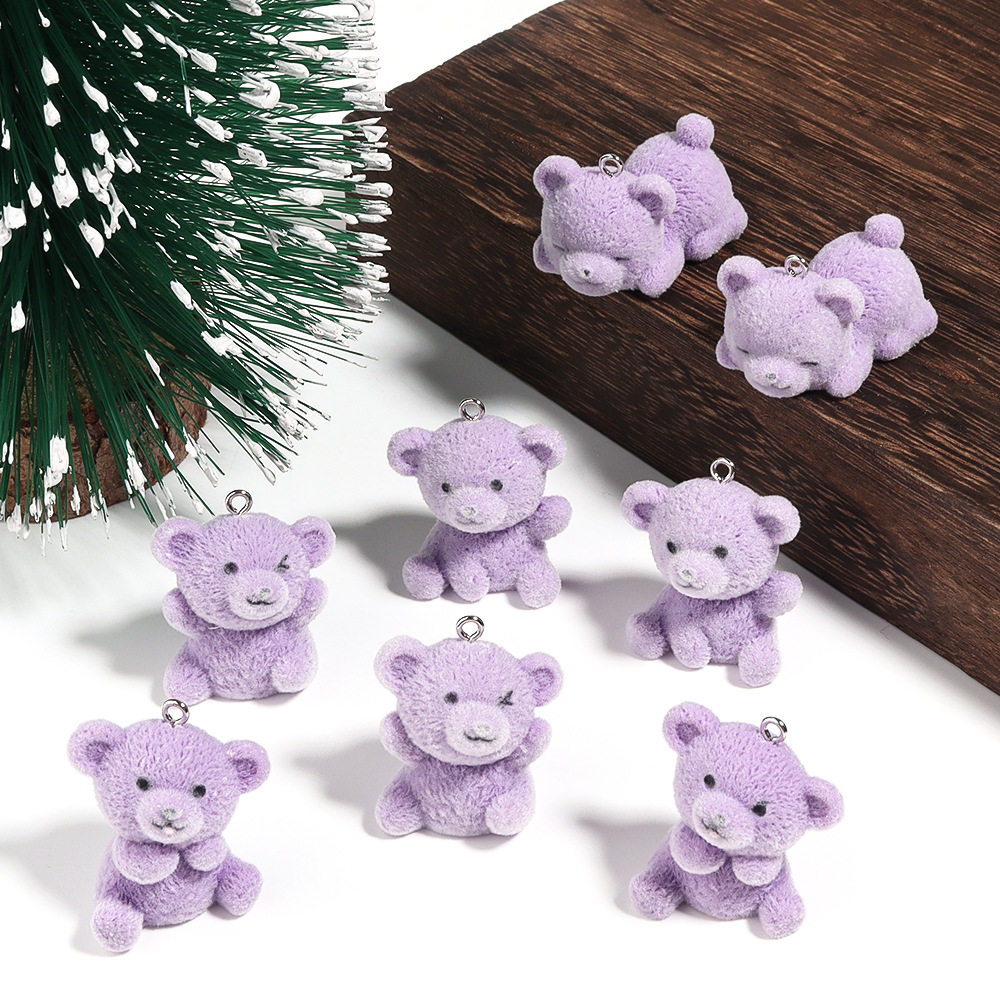 树脂植绒立体卡通可爱小熊吊坠 DIY手工饰品挂件配件材料 English | 投诉