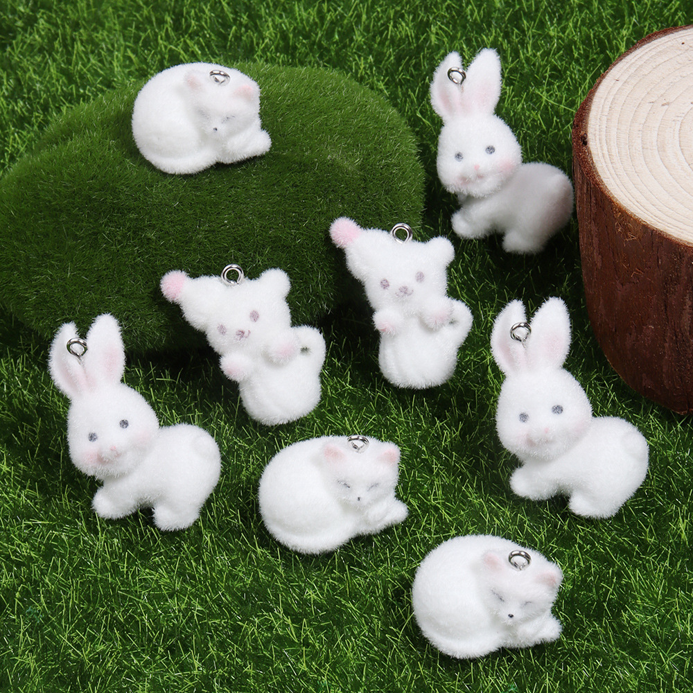 树脂植绒立体卡通可爱兔子猫咪小熊 DIY饰品挂件配件材料 English | 投诉