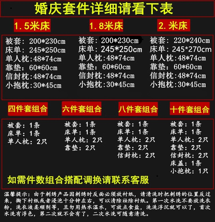 | 1.5m(5英尺)床-十件套-送枕芯+被芯 | ¥120193 | 3200件可售 |