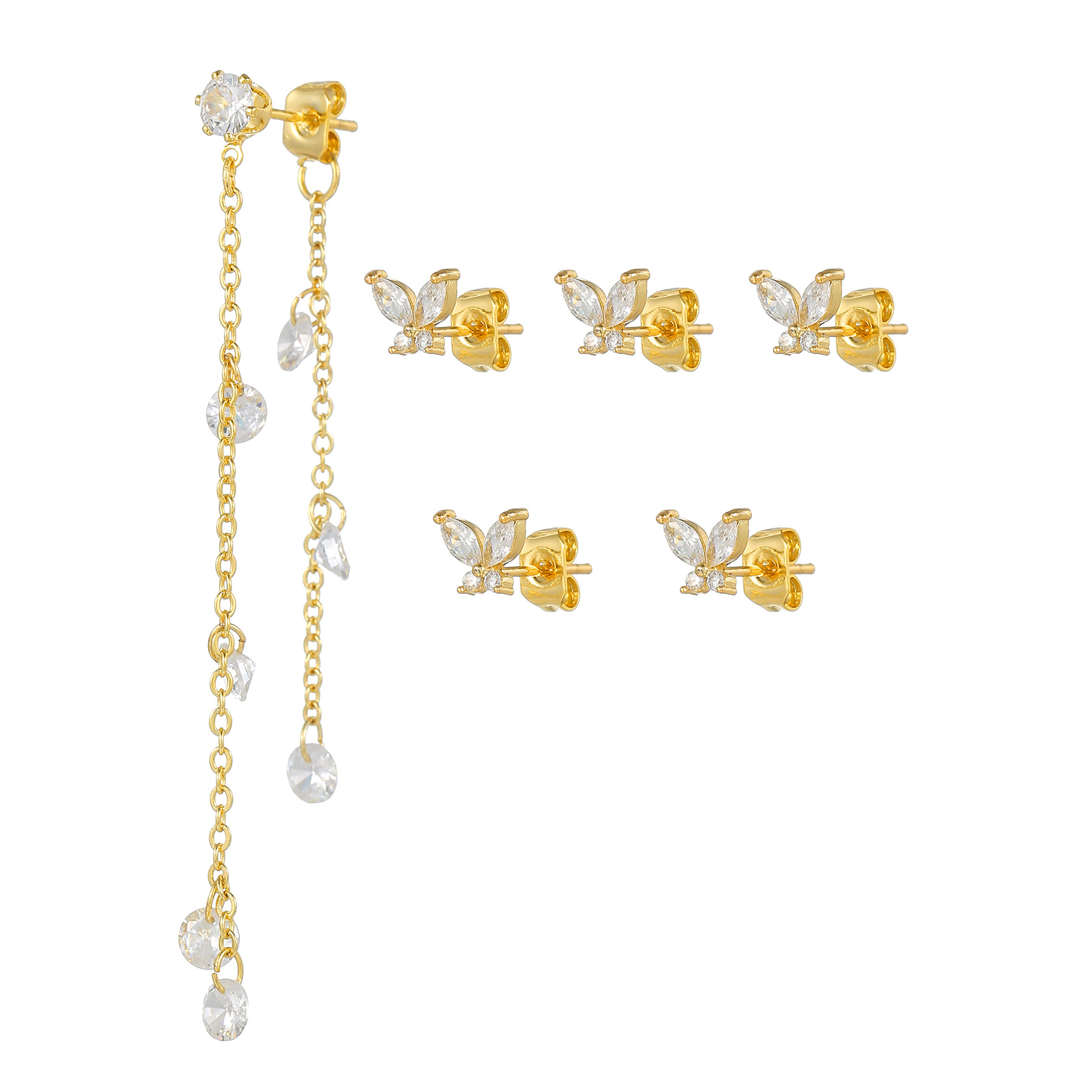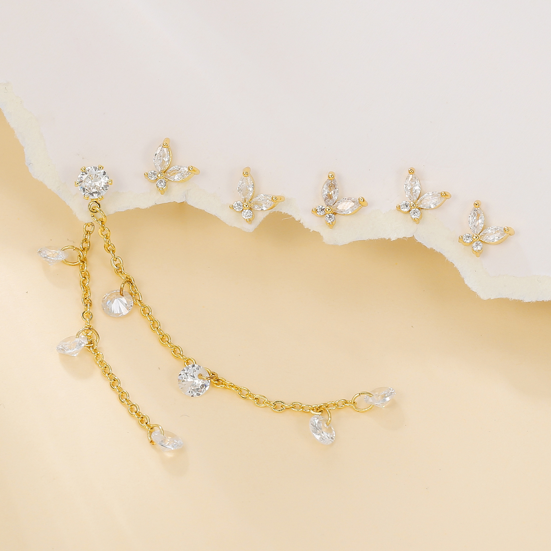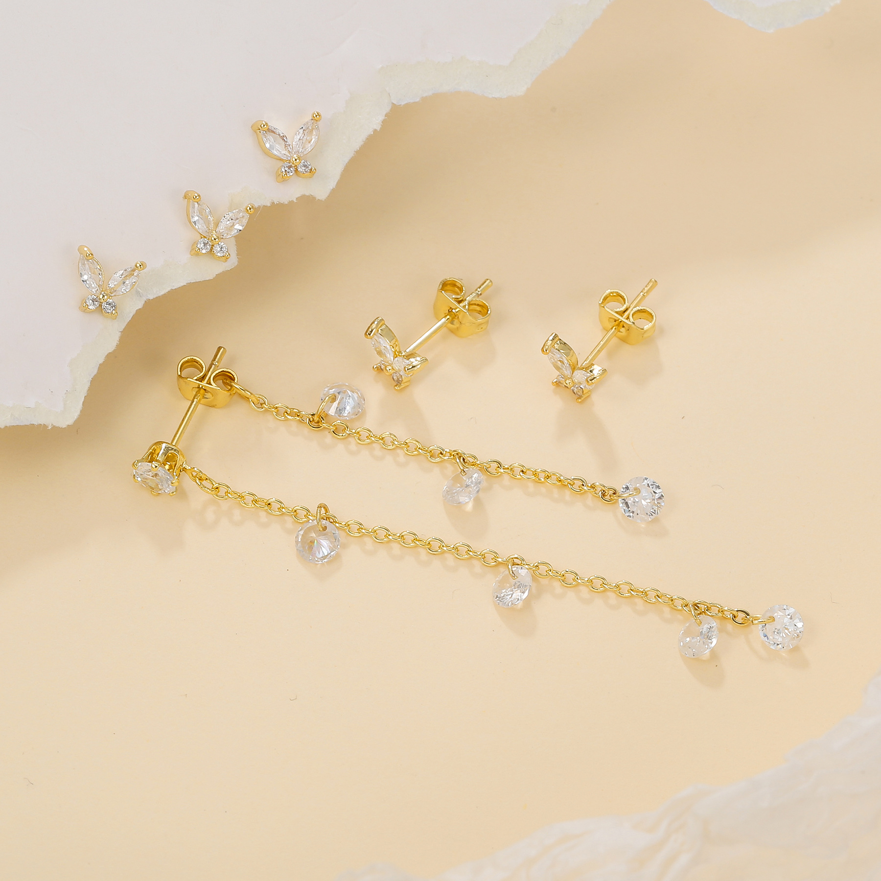 韩版简约ins风时尚蝴蝶微镶清醒甜美圈圈锆石水滴流苏吊坠耳环女 English | 投诉