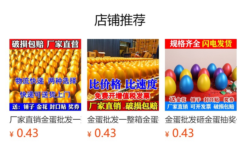 | 金蛋12厘米一箱150个【不包邮】 | ¥61 | 998949个可售 |