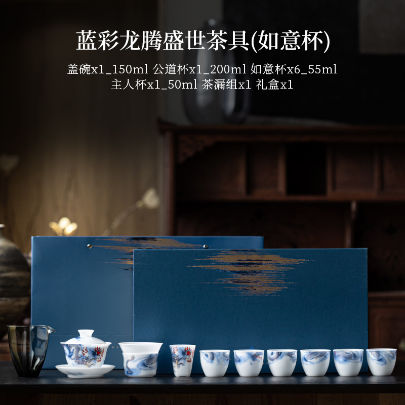 蓝彩龙腾盛世茶具(如意杯) ¥0 9996套可售